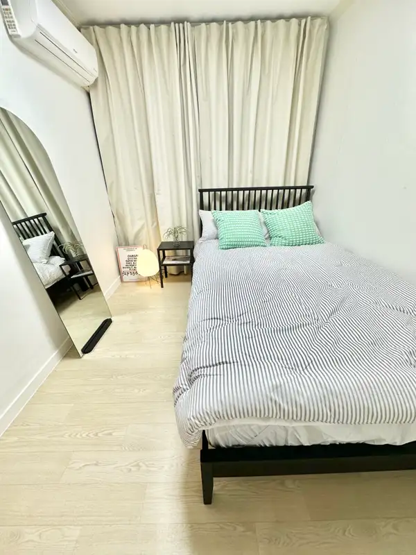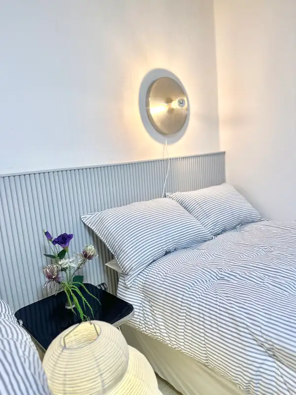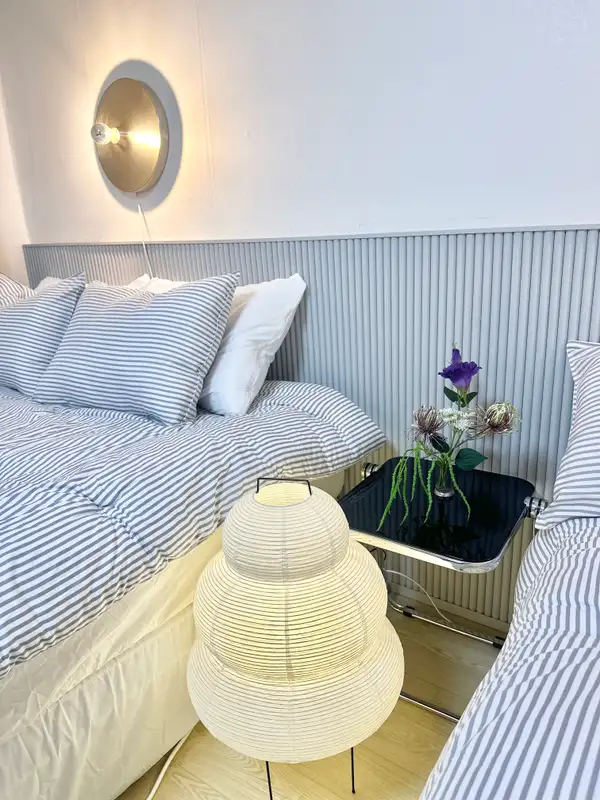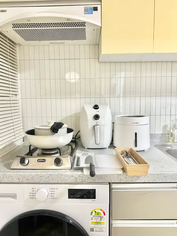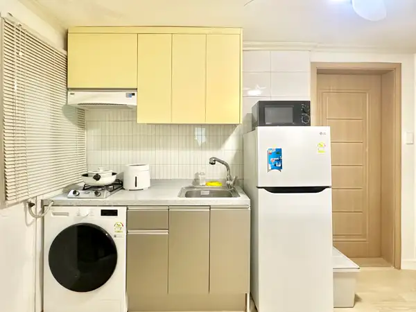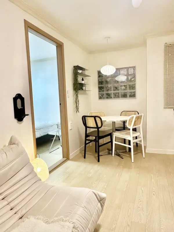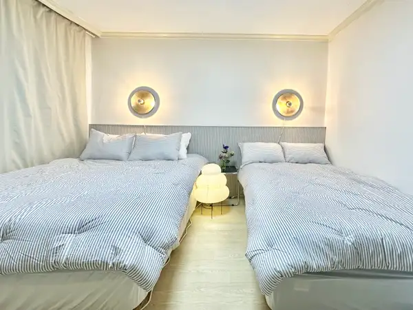 It is a 5-minute walk from Exit 1 of Konkuk University Station and is the best location for convenient travel throughout Seoul by transferring lines 2 and 7. The airport bus stop is also close, so it is convenient for both long and short stays. It is a semi-underground structure, but if you come down only four steps, you can live in a bright and pleasant environment. The accommodation has two rooms and three beds (Queen 1, Super Single 2), so family, friends, and international students can all stay comfortable. It has full options for life, such as 32-inch smart TVs, washing machines, dryers, and cooking utensils, and boasts a clean white & gray-toned modern interior. Nearby, you can use Konkuk University Eat Alley, Lotte Department Store, E-Mart, Common Ground, and Hot Place as press rights, and it is convenient to move to Jamsil and Gangnam, so you can enjoy shopping and healing at the same time.