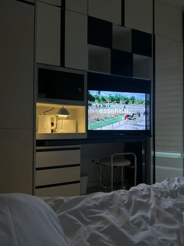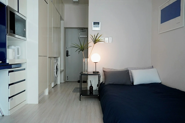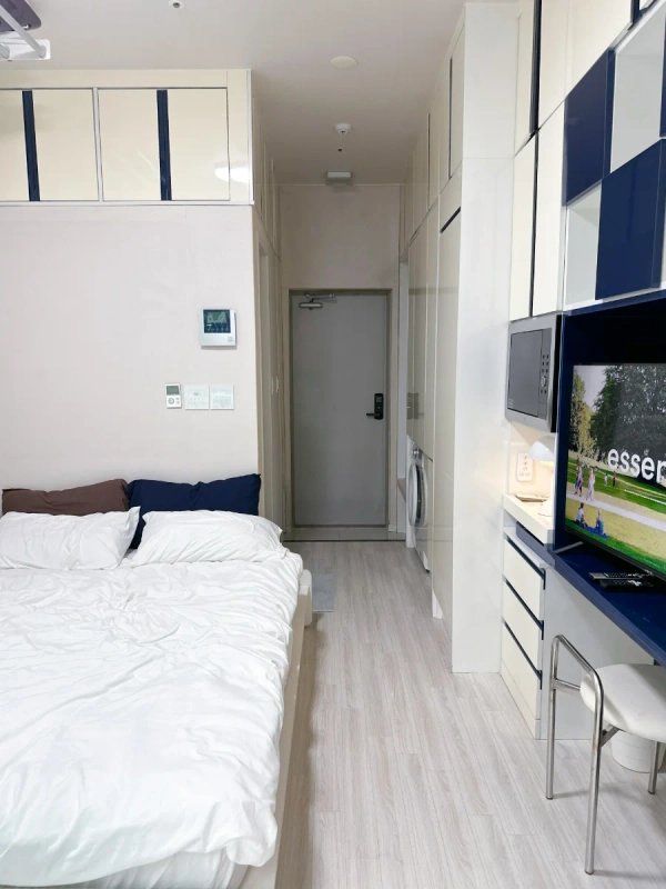Looking for a safe and well-connected home in Seoul with all the comforts you need? - ✨ Feel rich in comfort — even if your bank account stays the same! Enjoy your stay in a space where convenience meets elegance. Perfect for solo travelers or business guests, this modern studio offers a peaceful retreat after a long day — with a cinematic evening waiting right on your big-screen TV. - 🌟 Highlights ▶ The only studio near Yangcheon Hyanggyo Station offering ₩100,000/month free parking benefit ▶ 24-hour security on the main street — a safe and protected stay, especially for solo travelers ▶ Stylish bathroom with glass shower booth — enjoy a hotel-like refresh ▶ Spacious built-in storage for stress-free long stays ▶ Large Smart TV with Netflix — unwind like you’re in your own private theater - Check-in: 15:00 / Check-out: 12:00 (Please contact us if you need to adjust the time.) Self check-in is available for your convenience. Once your booking is confirmed, you will receive a message with full check-in and usage instructions. On the day of arrival, the building and room access codes will be provided via message. We kindly ask for your understanding that smoking indoors and pets are not allowed. - 🏠 Accommodation Features [Bedroom & Living] *Super Single Bed / Fresh Bedding / 4 Pillows *50” Smart TV (Netflix, YouTube, Tving) *2 Chairs & Table *Closet / Built-in Storage / Mirror *Mood Lighting / Blackout Curtains / Hangers [Bathroom] *Glass Shower Booth / Hair Dryer / Toiletries [Laundry & Cleaning] *Drum Washing Machine / Laundry Drying Rack / Dryer / Basin / Squeeze [Kitchen & Dining] *Appliances: Refrigerator, 2-Burner Induction Stove, Microwave, Coffee Pot *Cooking Tools: Frying Pan, Pot, Spatula, Ladle, Knife, Tongs, Scissors *Tableware: Set for 2 People, Wine Glass, Mugs *Other: Scrubber, Kitchen Detergent, Rubber Gloves 📍 Location Highlights [Transport] 🚇 3 min walk: Yangcheon Hyanggyo Station (Line 9) 🚌 15 min: Gimpo Airport | 25 min: Yeouido Business District [Nearby Amenities] 🏪 Convenience Store: 1 min walk ☕ Café Street: 3 min walk 🥬 Market: 4 min walk 💄 Olive Young: 5 min walk 🍿 CGV Cinema: 7 min walk