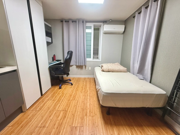 Jeungsan Line 6 Cozy Studio Apartment (20 min to Hapjeong) A private studio with a private bathroom and kitchenette, fully equipped with essential household appliances — perfect for long-term stays. Enjoy a comfortable and independent living space ideal for students, exchange visitors, and professionals. 🚉 Location Highlights: - 30-sec. walk to bus stop - 7-min. walk to Jeungsan Station (Line 6) - 1-min. walk to river (leads to Mangwon Hangang River Park) The neighborhood offers diverse restaurants, cafes, convenience stores (CU, GS25), parks, and leisure facilities, all conveniently accessible within a short walk. 😊 Host Introduction Welcome to Shelter — a cozy home for anyone seeking comfort and connection in Seoul. Whether you’re here for study, work, or travel, we invite you to find your own shelter with us — a place to rest, recharge, and feel at home, no matter how long your stay! 🎁 Facilities Provided The studio is equipped with a Super single size bed (110cm * 200cm mattress with frame), AC, desk and chair, wardrobe, washer, drying rack, kitchenette, kitchenware, microwave, Wi-Fi, cleaning equipment. (Note : Beddings are not provided and must be requested as an optional service if needed, during payment.)