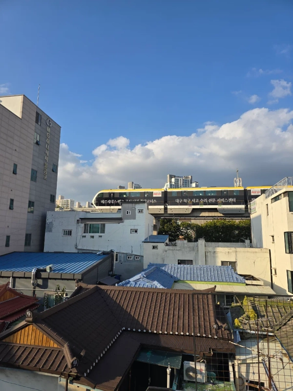 It's three rooms + living room + veranda +a utility room Jjin Daegu Experience Line 123 Station area downtown area Nearby location Up to 7 people 🩵 Daegu stay--"Love happy"-- Heart-fluttering accommodation💓 💓Come to Daegu and enjoy Daegu housing culture and living area ※ The following people ask a lot about my house - Anyone who lives abroad and comes in for a while - If you need a place to stay for a short period of time due to the construction period or moving relationship of the existing house interior - Those who use the market frequently in Daegu's center of transportation convenience - I'm traveling as a family, but the hotel It's a bit cumbersome and uncomfortable for some reason - I was sent to Daegu for one to three months Who needs a short stay -For those who need an independent space with more than five people - If you're tired of living in the city, you need your own healing hideout - Near Daiso, the largest in the country For those who frequently use the largest convenience store in the country, Jeju Island style -View Daegu E World 83 Tower from the third floor or rooftop. Anyone who wants to see the ground rail like a train (healing very quiet) ※Comfortable living so that you can make your body and live a 2-5 minute drive from the city center The central effect, 25 minutes away from the whole area of Daegu Subway Line 1 and Line 3 are two to five minutes away on foot There are many buses, too There is a lot of food in the convenience facilities It's located on BTS Street in Daegu The best hot street in Dongseong-ro Hyundai Department Store Dong-A Shopping Lotte Department Store E-World Cathedral Pond Mercury Pond Mountain Park in front of Duryu Park Kim Gwangseok Street in Daebong-dong Located near Daegu's largest night market, Seomun Market, Seonam Market, and Chilseong Market ☆ I hope you can stay comfortably in a warm and comfortable house.