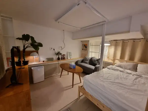 A cozy loft-style studio with an open, split-level layout. Private loft-style studio with separate sleeping and kitchen areas 🌿 Your Perfect Long-Stay Home in Seoul For Working Holiday, Study, Business, or Extended Travel Welcome to your cozy private home nestled quietly beneath Namsan Tower — the ideal place to experience the true charm of Seoul while enjoying comfort, convenience, and calm. 📍 Unbeatable Location Stunning view of Namsan Tower 5-minute walk to Namsan Mountain trail — perfect for daily walks in nature 10 minutes by bus to Seoul Station — ideal for exploring other cities in Korea 10 minutes to Myeongdong, a must-visit hub for shopping, food, and culture 10 minutes to Itaewon, Seoul’s trendy and international hotspot full of great restaurants and nightlife And yet, the house is in a quiet residential neighborhood, offering peace and rest after your city adventures 🏠 Fully Furnished & Thoughtfully Equipped 🧴 Fresh towels, 🍽️ full kitchenware, microwave, fridge, table & chairs — all provided free of charge 🛏 Bedding is available for a one-time fee of 35,000 KRW per person and can be used throughout your stay 🎁 As a welcome gift, we’ll provide extra towels and bedding for free 🧺 A self-service laundromat is just 5 minutes away for easy washing anytime 📶 High-speed internet and a newly installed smart TV let you enjoy Netflix and streaming at home 🫶 A Warm Welcome for Long-Stay Guests Whether you're coming to Korea for a working holiday, studying abroad, remote work, or an extended trip, this place is more than just a place to sleep — it's your base to rest, recharge, and live well. We’re already receiving interest from other travelers for stays this fall through next year, so if this feels right for you, don’t miss the chance to make it yours. Let us know if you have any questions — we’d love to help you feel at home in Seoul. Perfect for journaling, reading, or simply relaxing Thoroughly cleaned & steam sanitized before each stay.