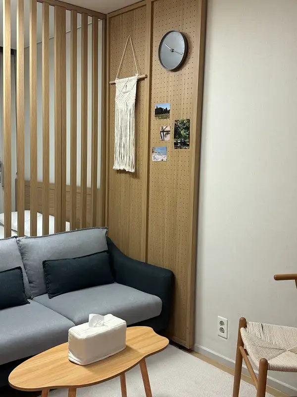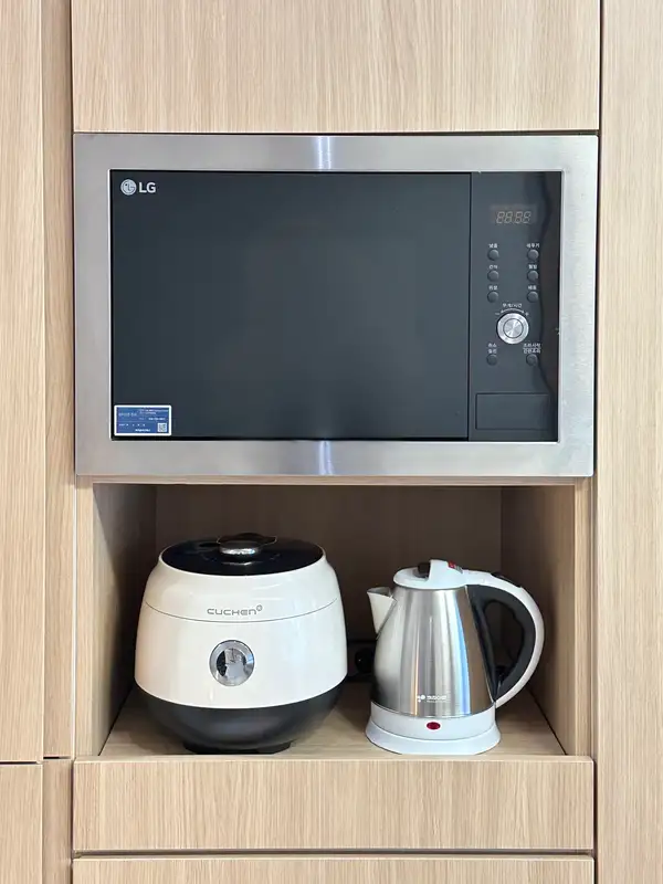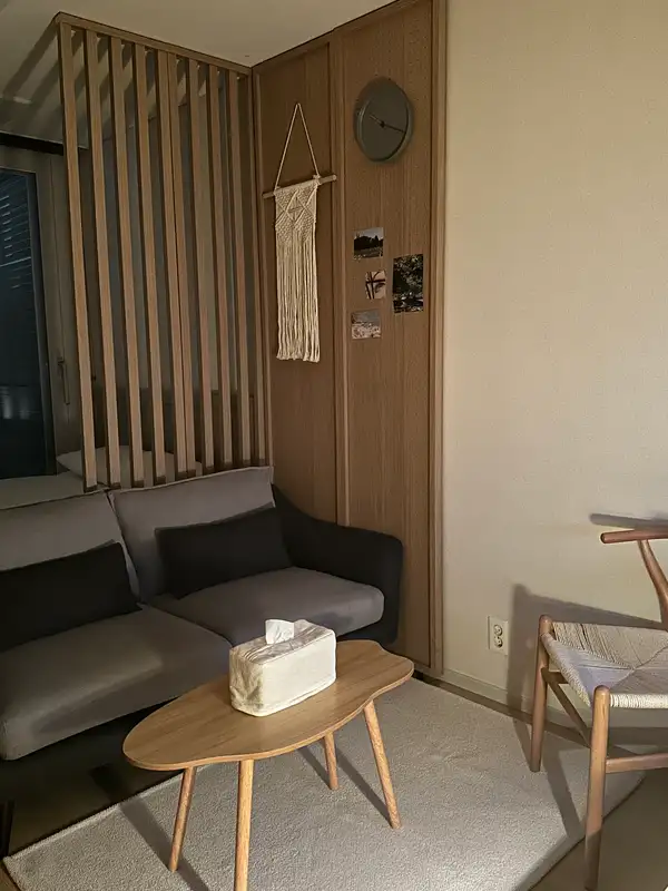 We will be the best STAY in Gwanggyo! Sitting on the terrace, having a cup of tea, in your busy daily life I hope it's a place where you can take a breather I prepared it with all my heart. It's a warm, comfortable wood-toned interior I filled in the small emotions. I'll give you a comfortable and special day. Take a rest. It is located in the best location within Gwanggyo. All the amenities are within walking distance. It's located opposite the Suwon Convention Center The Galleria Department Store is a four-minute distance, It is located 10 minutes away from Gwanggyo Central Station. Nearby Gwanggyo Lake Park, Cafe Street, Eliway, etc There are many things to see and enjoy. There are various restaurants and hospitals, Starbucks, Olive Young, Coin Laundry, Kyobo Bookstore, convenience store, and beauty salon inside the building. Hide lodging [Bed] When choosing a hotel, a bed that's important! in a clean, queen-sized bed Have a good night's sleep. ▶ A comfortable queen-size mattress worth 1 million won ▶ 60 pure cotton soft hotel bedding (Replace all bedding every day!) ▶High-end hotel-style pillows with more than 90% goose down [Main space] It added the warmth of nature with a plant terrier to the mid-century modern sensibility. It has a subtle combination of soft and modern props, How about a cup of tea while listening to music in a charming space? What is your favorite movie? Before I go to sleep with my precious person, in my own movie theater I think it would be good to watch a movie :) ▶ carpet tile that is kept clean, a full-length mirror and an interior shelf ▶ Marshall Speakers ▶ 100" Beam Project Screen Filling One Side (Courtesy of Netflix) ▶ Sharala Chiffon Curtain & 100% Dark Film Roll Screen [Kitchen] I've composed a variety of cute and attractive kitchenware. Even if you drink a cup of tea, you feel good when you drink it in a pretty cup. :) ▶Refrigerator, microwave, induction, electric pot, croffle machine ▶Ili Coffee Machine & Ili Coffee Capsule ▶ Making and eating croffles (Croffle raw paper, whipped cream, and maple syrup) ▶Twining Earl Gray Black Tea ▶Cup ramen ▶ Kitchen tableware (Plate, rice bowl, soup bowl, small bowl, frying pan, pot, cup, etc.) ▶ Seasoning (salt, sugar, pepper, red pepper powder, soy sauce) ▶ Plastic bags and kitchen towels [Bathroom] Relieve your fatigue with a lower-body bath on a tiring and exhausting day! (For the cleanliness of the bath, I am paying special attention.) ▶ Toothbrush, toothpaste, foam cleanser, shower towel ▶Shampoo, rinse, body wash, hand wash ▶4 organic cotton towels (+1 extra) & a water-repellent towel * 2 more towels per additional person [The dressing table] ▶ Hair dryer, curling iron Hair roll, roll comb, regular comb ▶ a 3-in-1 charger Other Precautions # It's free parking. # You can use a washing machine for long-term accommodation. (Provide detergent and fabric softener) # It is absolutely prohibited to smoke indoors. # In the event of damage or loss of an article You will be charged for it. # Contamination of bedding and carpet towels (blood, cosmetics, food) If it occurs, you will be charged as much as the amount of the product. ▶ As long as it's not unreasonable, any part of it It can be coordinated. I can contact you even if it's late, If you have any questions, please feel free to contact me :)
