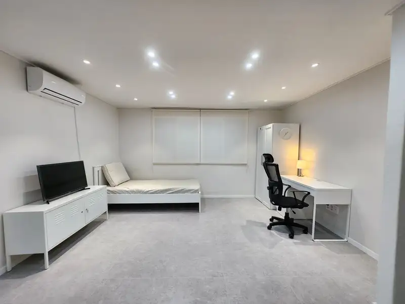 ✨ Bright & Quiet Private Studio in Gaya ✨ Fully renovated • Move-in ready • Affordable stay near Dong-Eui Univ. 🌟 Highlights • Spacious private studio on the 4th floor • Fully renovated with modern interior • Professionally cleaned – ready for immediate move-in 🛋 Features & Amenities • Samsung TV, refrigerator, LG washing machine, air conditioner, electric cooktop • Bathroom, sink, lighting all renovated • IKEA bed, desk, and wardrobe • Fire-rated entrance door, digital door lock, video intercom 💡 Utilities & Rules • Electricity, gas, and water included • Internet not included (For long-term stays, installation can be arranged upon request) • Extra charges may apply for excessive use of utilities • No smoking / No pets (special cleaning fees apply if violated) • No parties or disruptive behavior • Bedding, bathroom items, and kitchenware are not provided (bedding rental available) 📍 Location • 10-min walk to Dong-Eui University • 15-min walk to Dong-Eui Univ. Subway Station (Line 2) • 4-min walk to the nearest bus stop • Paid parking available nearby (~70,000 KRW/month) 🛏 Bedding Rental (Optional) • Please request at least 2 days in advance • Single bed set (mattress pad, blanket, pillow): 30,000 KRW / 4 weeks • Single floor set (floor mattress, blanket, pillow): 60,000 KRW / 4 weeks • For every 2 sets, add 10,000 KRW for round-trip delivery • Even if your stay is shorter than 4 weeks, the rental fee is charged on a 4-week basis