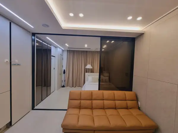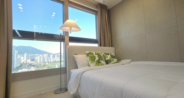 a new hotel-inspired residence - an open high-rise city view - Sliding door allows for separate 2 rooms - Full Option (Washing Machine, Dryer, Clothing Management Equipment Finished) - Seomyeon Cafe Street, underground shopping mall, and walking distance to famous restaurants - Station area within a 5-minute walk of Seomyeon Station Convenience of transportation to the transfer station where Seomyeon Subway Line 1 and Line 2 pass - Where you'll be satisfied with your business trip, travel, and travel - Moving in is conducted non-face-to-face. - Basic: Based on 2 people (up to 4 people - 200,000 won per additional person per person) - When the move-in is confirmed, we will send you an information on moving-in and use - Admission (4 p.m.) and departure (11 a.m.) can be adjusted. - (Queen) Bed, sofa bed, stand, built-in refrigerator for latest home appliances Washing Machine Dryer Oven Styler Full Air Conditioner - CCTV / 24-hour security office - Shared office, book cafe in the building - Provide clean space prepared by washing, cleaning, and disinfection - Moving-in notification 🚫 No smoking indoors, party 🚫 - Use the collection center outside the building for separate collection (back left) - Unable to enter with companion animal In the event of a hygiene problem related to companion animals, a special cleaning outsourcing company orders a service and claims compensation other than cleaning expenses - If the maintenance fee exceeds 300,000 won due to excessive use, additional charges may be incurred * The set fee is for two people.