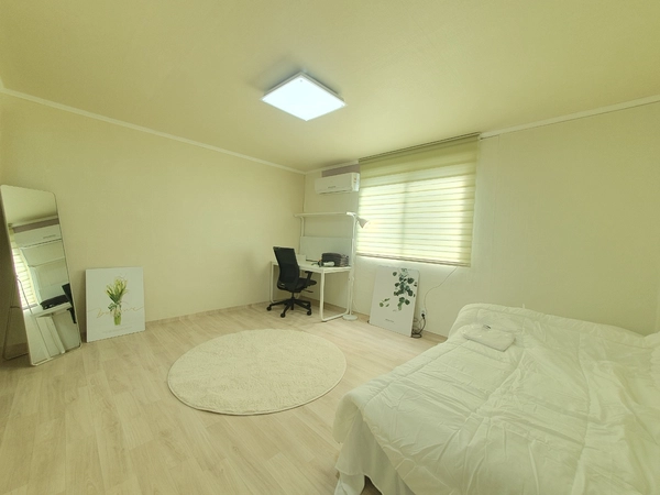 MIRAI Korea — a specialist accommodation company for international guests. 1) Overview A 33.0㎡ (approx. 355 sq ft) home just a 9-minute walk from Inha University. There are restaurants and convenience stores nearby. The layout includes a spacious room, a separated kitchen, a veranda, and a toilet, with a total of 1 single bed. A very large premium single room; two people can stay without any extra charge. Bright, airy, and quiet—an excellent choice near campus. This is a private space not shared with anyone else—exclusively for you or your friends. Most neighbors are Inha University students, so the area is generally safe and you can go out safely even late at night. Amenities: • Vacuum cleaner • Washing machine • Fully equipped kitchen • Refrigerator • Air conditioning in every bedroom • Heating • Cleaning tools • Ample tableware and cookware • Wi-Fi Host notes • The host lives nearby and can respond quickly if anything comes up. • A rental contract for ARC (Alien Registration Card) applications can be provided. • Communication available in English, Japanese, and Korean. • The host is an Inha University graduate with experience hosting 400+ exchange students. 2) Check-in & House Rules • Move-in is generally self check-in (contactless). • After your booking is confirmed, we’ll share the detailed address and guidance. • Your door code will be sent the day before arrival. • No smoking indoors. • No pets. • You may change the door code during your stay; please restore it to the original code before checkout. 3) Transportation • 9-minute walk to Inha University. • Very close to bus stops. • About 10–15 minutes by bus to Juan Station; buses run roughly every 5 minutes.