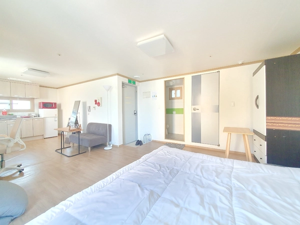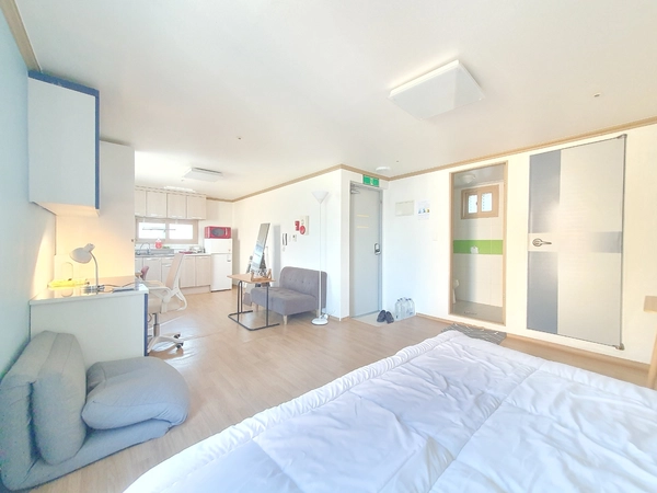 MIRAI Korea — a specialist accommodation company for international guests. 1) Overview A 33.0㎡ (approx. 355 sq ft) home just a 9-minute walk from Inha University. It sits in the heart of the campus area, surrounded by many restaurants and convenience stores, while the interior itself stays very quiet. The layout includes a spacious room, a separated kitchen, a veranda, and a private toilet, with a total of 1 wide single bed. A very large premium single room; two people can stay without any extra charge. Bright, airy, and quiet—an excellent choice near campus. This is a private space not shared with anyone else—exclusively for you or your friends. Most neighbors are Inha University students, so the area is generally safe and you can go out safely even late at night. Amenities: • Vacuum cleaner • Washing machine • Fully equipped kitchen • Refrigerator • Air conditioning in every bedroom • Heating • Cleaning tools • Ample tableware and cookware • Wi-Fi Host notes • The host lives nearby and can respond quickly if anything comes up. • A rental contract for ARC (Alien Registration Card) applications can be provided. • Communication available in English, Japanese, and Korean. • The host is an Inha University graduate with experience hosting 400+ exchange students. 2) Check-in & House Rules • Move-in is generally self check-in (contactless). • After your booking is confirmed, we’ll share the detailed address and guidance. • Your door code will be sent the day before arrival. • No smoking indoors. • No pets. • You may change the door code during your stay; please restore it to the original code before checkout. 3) Transportation • 9-minute walk to Inha University. • Very close to bus stops. • About 10–15 minutes by bus to Juan Station; buses run roughly every 5 minutes.