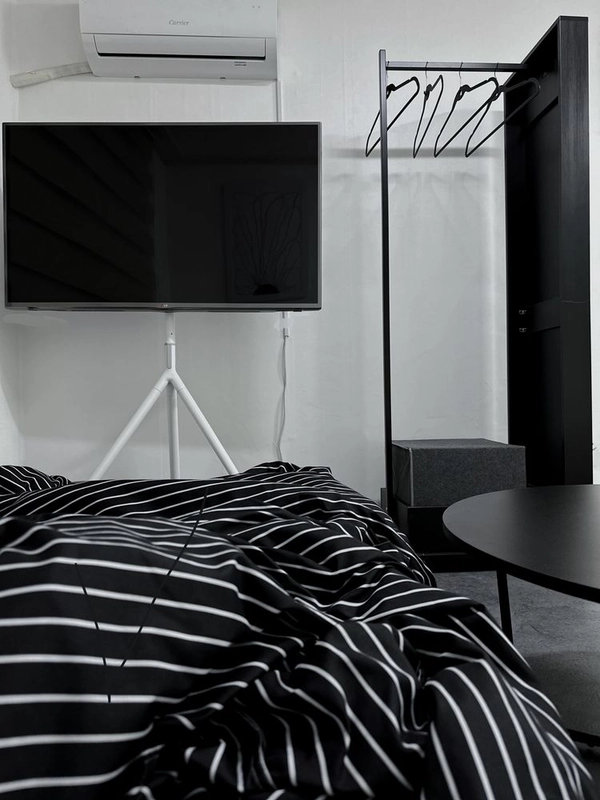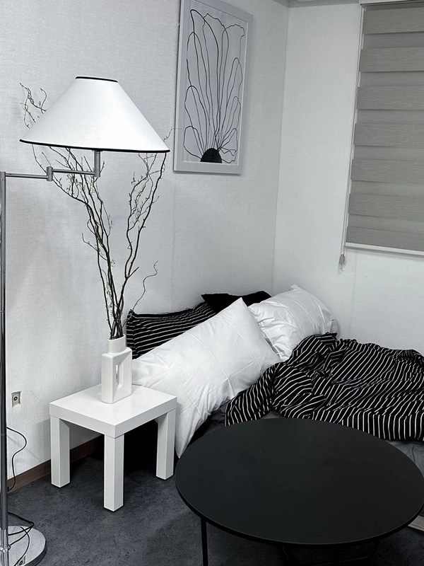 Experience modern comfort in the heart of Sinsa! - ✨ Sinsa Stylish Black & White Retreat Step into a bright and modern Black & White room, featuring a 50-inch TV for Netflix in bed, SS bed, fresh bedding, and top-of-the-line LG washer & dryer. Perfect for solo travelers, couples, or a small group, this cozy space offers privacy and comfort in a quiet yet vibrant neighborhood. 🏡 Room Amenities 50 inch TV/Super single Bed / Fresh Bedding / Hair Dryer / LG Washer & Dryer ✨ Highlights: ▶ Just steps from Garosu-gil, yet tucked away for a peaceful stay ▶ Only 8 minutes’ walk from Sinsa Station (Shinbundang Line / Line 2) – super convenient! ▶ Located in a safe, women-friendly neighborhood ▶ Spacious bathroom and double windows for easy laundry ▶ Netflix available for ultimate relaxation ▶ Popular for post-cosmetic procedure recovery due to its quiet and comfortable environment - *Check-in: 15:00 / Check-out: 12:00 (Please contact us if you need to adjust the time.) *Self check-in is available for your convenience. *Once your booking is confirmed, you will receive a message with full check-in and usage instructions. *On the day of arrival, the building and room access codes will be provided via message. *We kindly ask for your understanding that smoking indoors and pets are not allowed. - 🏡 Accommodation Features [Bedroom & Living] *SS Bed / 4 Pillows / Fresh Bedding *50-inch Apple TV (Netflix, YouTube, TVing, Disney Plus, etc.) *Sitting Table / Nightstand / 2-person sofa + cushion *Mood Lighting *Blackout Curtains *Mirror *Hangers / Drawer [Laundry & Cleaning] *LG Washer & Dryer *Laundry Drying Rack / Basin / Dryer / Tissue / Hand Sanitizer [Kitchen & Dining] *Appliances: Refrigerator / Induction Stove (2 holes) / Microwave *Cooking Tools: Frying Pan / Pot / Spatula / Ladle / Knife / Scissors *Tableware: Set for 2 People / Wine Glass / Mug *Other: Scrubber / Kitchen Detergent / Rubber Gloves 📍 Location Highlights [Transport (Triple Station Area)] 8 min walk: Sinsa Station (Line 3 / Shindang Line) 10 min walk: Apgujeong Station [Nearby Amenities] 🛣️ Garosu-gil – 1 min walk 🏪 Convenience Store – 5 sec walk 🌳 Park – 10 sec walk ☕ Milestone Coffee(hot place) – 2 min walk 💄 Olive Young – 5 min walk 🍿 Movie Theater – 8 min walk 🛒 GS Fresh (Large Mart) – 4 min walk 👮 Police Station – 5 min walk 🅿️ Public Parking – 3 min walk