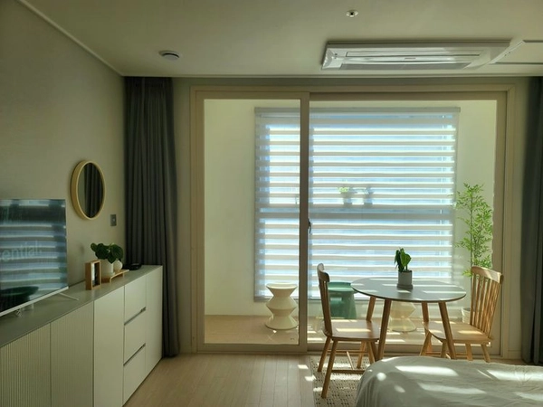 There are many convenience facilities such as MEGABOX, cafes, hospitals, and large kids' cafes in the building, and it is a spare space in the city near Anyangcheon Stream and Gureumsan Mountain. ➡️ If you have any questions, please feel free to chat. 🙂 ➡️ Moving in will be conducted non-face-to-face. ➡️ Occupation: After 3 p.m., check-in: Before 11 a.m. ➡️ Additional daily reservations are available. ◾️ Deliver the accommodation guide when the reservation is confirmed ◾️ High-speed wifi available ◾️ 24/7 security office on the first floor ◾️ Korean buffet operation in the building ◾️ You can wash it in the dorm ◾️ All OTT usage is available as a guest account ◾️ Netflix, YouTube, Disney Plus, Coupang Play, etc ◾️ Convenience stores, cafes, and convenience facilities are adjacent ◾️ High temperature sterilization wash every time, thorough hygiene management ✔️ Important notices ◾️ Moving in is not possible. ◾️ The entire building is non-smoking. ◾️ Your pet is not allowed to enter. ◾️ According to the regulations, you have to prepare personal hygiene products separately. ◾️ We are not responsible for the loss of valuables. ◾️ Damage incurred (smoking, pet, damage) will be deducted from the deposit. ✔️ Bedroom Smart TVs (various OTTs), LG Trom washing machines, Samsung system air conditioners (cooling/heating), boilers (warmers), vacuum cleaners, ventilators, queen beds (150x200 cm), generous storage, closet 2, round table, chair 2, narrow table, hotel wood diffuser ✔️ Kitchen Samsung Built-in Refrigerator, Electric Rice Cooker, Microwave, Electric Pot, 2-Outlet Induction, Kitchen Ventilator, Korean Food Tableware Set 20P or More, Cutlery Set, Ladle, Flipper, Knife Set, Scissors, Mug, Glass Cup, Pot/Pan Set, Stainless Steel Strainer, Cleaning Bowl (Large) ✔️ Bathroom a shower/bathroom/wash basin, a hairdryer ✔️ Other Information ◾️ 6th floor wide Anyangcheon Stream view lawn hall in the building It is adjacent to Geumcheon-gu Office Station and KTX Gwangmyeong Station on Line 1, and you can use Gangnam Circulation Expressway, Seohaean Expressway, Second Gyeongin Expressway, and Gwangmyeong-Suwon Expressway.