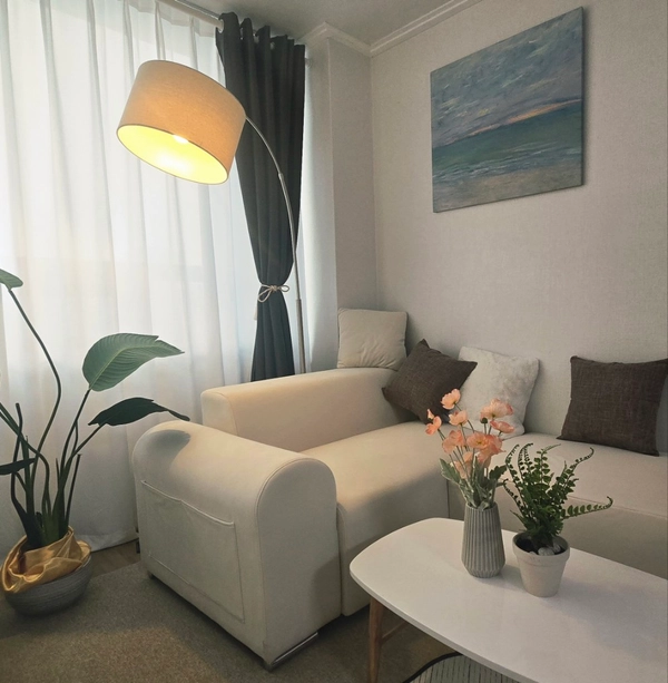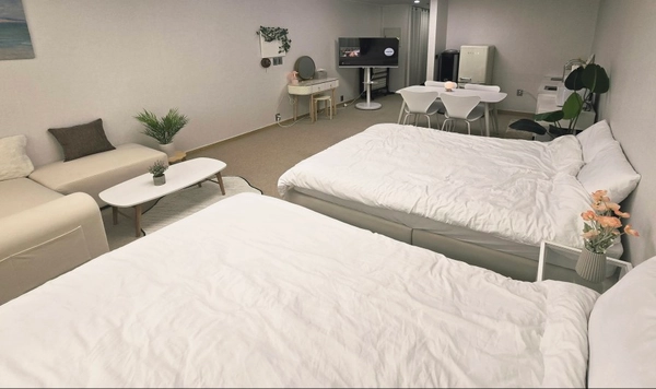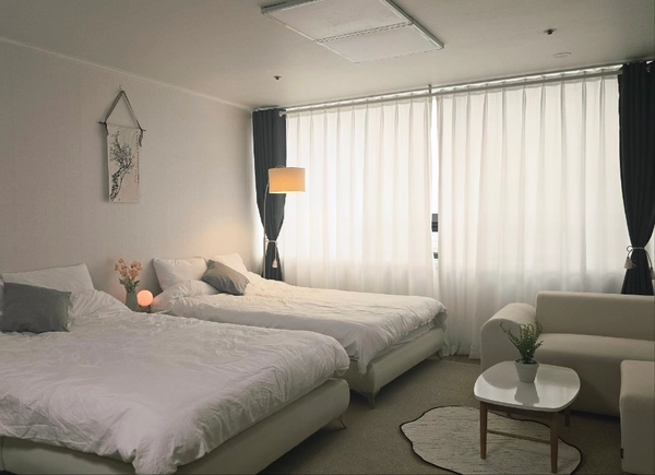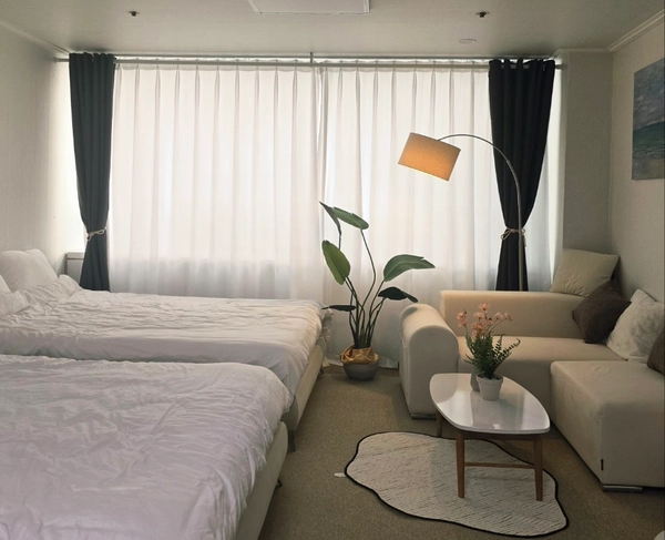 It's a clean white and beige-toned and spacious studio apartment. It is directly connected to the subway line 2 and the city airport railway Hongik University Station There are various amenities such as restaurants, pubs, and cafes, so it's very convenient to live in It boasts a bright and open view, especially the Namsan Tower in the distance! 🤍There are two queen-sized beds, a single-person cot, and a table for four, which is enough for a large number of people to stay. Location ㅇThe entry will be conducted non-face-to-face. ㅇPets cannot be accompanied. ㅇ Indoor smoking is prohibited as a collective building. Please be careful not to cause damage to the surrounding generation due to smoking, noise, etc 📌 Once the contract is confirmed, we will send you a message of information 3 days before moving in. ㅇ There are pharmacies, convenience stores, Olive Young, and various kinds of restaurants on the first floor and underground floor of the building There are many restaurants, cafes, and various convenience facilities on the road in the front and back, so it is very convenient for life. If you enter LG Palace directly toward Exit 9 of Hongik University Station on Subway Line 2, it is connected to the 2nd basement floor of this building. Take the elevator to the first floor in front of the pharmacy on the right and use the officetel elevator to come to the 11th floor. ㅇUrban Airport Railroad Hongik University Station 5 minutes 2 minutes bus stop on the road in front (there are a lot of bus routes)