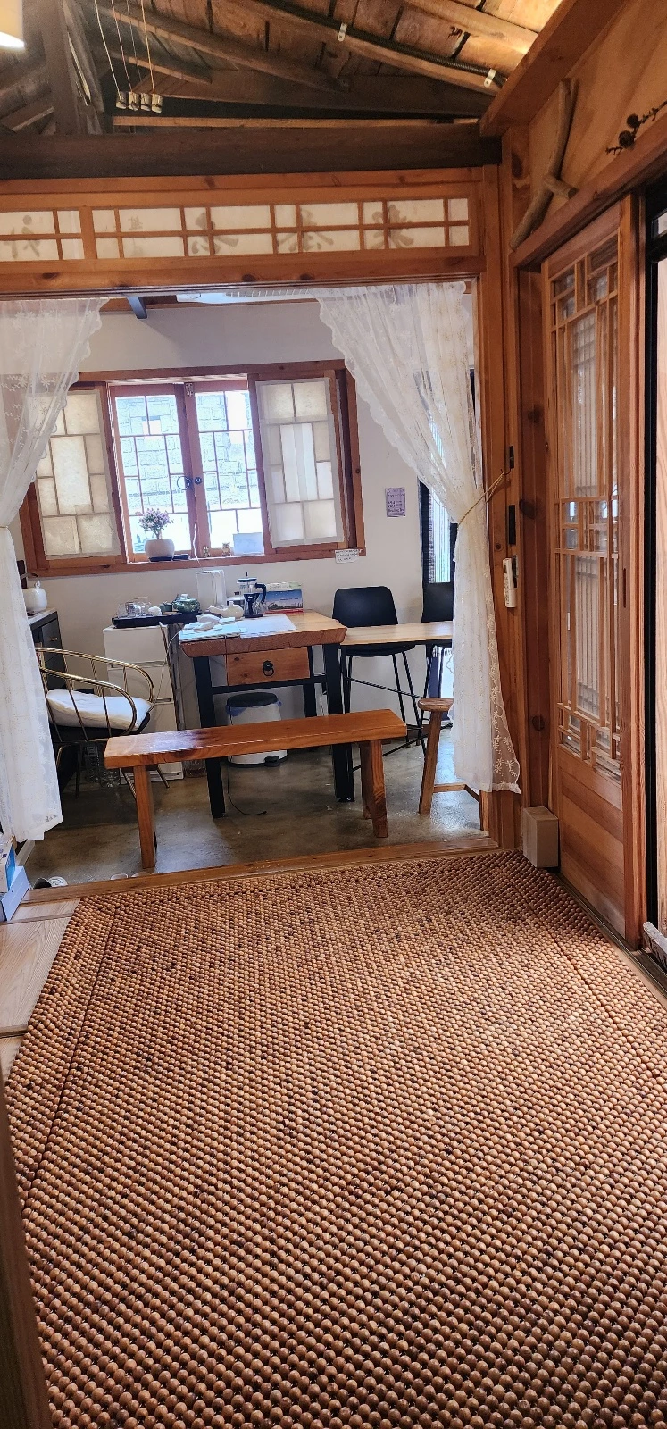 It's a hanok-style house Take a taxi at Dongdaemun Station Exit 1 on Line 1 Or take a taxi from Exit 10 of Dongmyo Station It takes 10 minutes There's a hill you're going to walk to The castle in Naksan has a UNESCO-designated park and Heunginjimun night view. FRC documents are available.