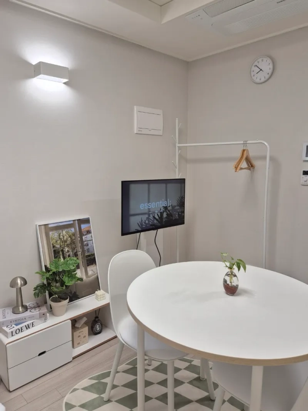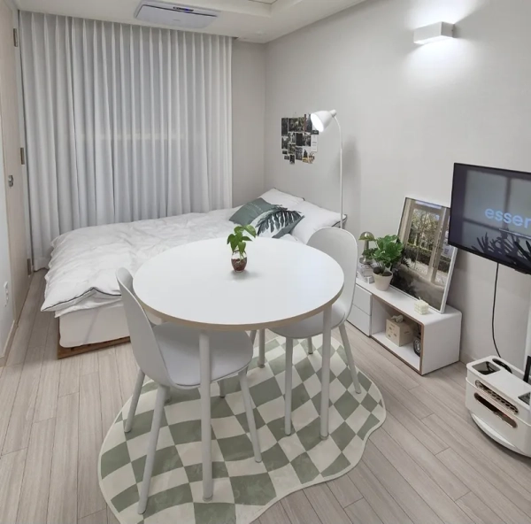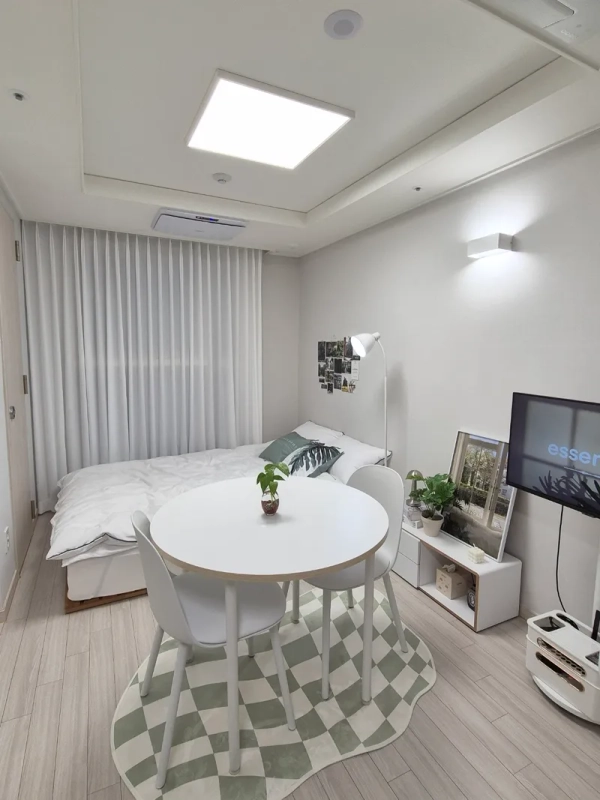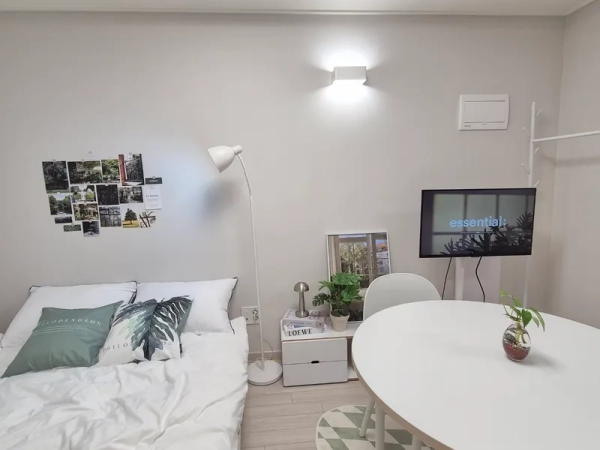 🌿Suwon Station 5 minutes! a convenient metropolitan area a clean and cozy minimal house -This is the room that was recently remodeled. (Prepared as a clean new item) - It is a comfortable and cozy interior of white + green tone☘️. -Stainless Steel By Me Mobile TV -Free wifi, Netflix, YouTube available -Queen bed+ full option room (washing machine drying function). -For all guests, bedding will be washed and replaced every time! -Air purifier, shredded food processor built-in (no need to go to throw away food waste) -There are coin laundry rooms, CU convenience stores, and cafes on the first floor of the building, making it convenient to use. -Small library right next to the accommodation 🚌 Location and surroundings .It is a 5-minute walk from Exit 3 of Suwon Station and is a good location for transportation and commercial areas. It is well equipped with daily amenities such as a mart, department store, movie theater, Olive Young, convenience store, laundromat, and hospital within a 1-minute distance. . Don't worry about coming home late at night on the side of the street without entertainment 📍 Nearby attractions ✔️ Haenggung Palace, Haenggung-dong Street, Suwon – 4.7 km (13 minutes) ✔️ Suwon Traditional Market & Rodeo Street -5 minutes of car, walkable ✔️ Suwon Starfield-Car 10 minutes ✔️ Suwon Hwaseong Museum - 4.6 km ✔️ Suwon Museum of Art - 4.3 km 🏯 A special experience in Suwon Hwaseong! Palace experience 🏹 Martian Fish Car Tour 🚂 Experience flying water source (ad balloon) 🎈 🚆 Convenient to move to Seoul and major tourist attractions! Enjoy a trip close to Seoul and experience Suwon's charm with its culture and traditions! <Suwon Station's 5-minute walk is a special price> -This is the first tenant room since the recent remodeling was completed. -It is a clean and comfortable interior with a clean white + green tone. -It's a queen bed+ full-option room.(Including washing machine drying function) -Every time a guest changes, I wash my bedding -Built-in Air Purifier and Grinding Food Disposal Machine -There are coin laundry rooms, cu convenience stores, and cafes on the first floor of the building, making it convenient to use. -Safe environment without entertainment, safe even late at night