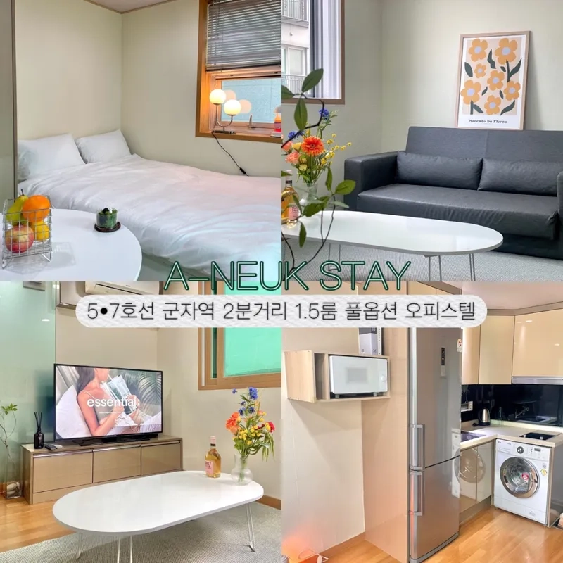 🏡 Cozy & Clean Stay in Gunja Perfect for Travelers, Students, and Medical Visitors Located in central Seoul with easy access to both Line 5 & Line 7. Especially convenient for visits to nearby Konkuk and Sejong Universities. 📍 Location • 2-min walk from Gunja Station (Lines 5 & 7), Exit 3 • 3-min walk to Airport Limousine Bus Stop (6013) • Close to Konkuk Univ., Sejong Univ., Hanyang Univ., Children’s Grand Park, and Jungnangcheon Stream • Easy access to Gangnam, Songpa, Seongdong, and Jongno via Lines 5 & 7 • 30 mins to Gangnam Station, 13 mins to Gangnam-gu Office Station 🏡 703 🧹 About the Stay • Professionally cleaned by a certified service • Quiet, cozy space for up to 4 guests (Extra guest & pet cleaning fee applies) • Newly opened and fully furnished with premium amenities 🛏️ Amenities • Samsung 50” 4K UHD Smart TV (YouTube/OTT available) • Washing machine, fridge, microwave, vacuum cleaner, dryer • Double bed, sofa bed, dining table & chairs • Clothes drying rack, ironing board, full kitchenware set • Cookware: pots, pans, knives, utensils, tableware for 2 • Cooking appliances: induction, electric kettle, fridge, ventilation hood 🏡305 🛏️ Property Details • Newly opened, fully furnished studio • Designed for 1 guest (Max 2 guests allowed) • Extra guest or pet may incur additional cleaning fee • Professionally cleaned and well-maintained ✅ Main Features • Double bed • Samsung 50” 4K UHD Smart TV (YouTube/OTT available, no shared login) • Washing machine, refrigerator, microwave, vacuum, dryer • Dining table & chairs, sofa bed, drying rack, ironing board 🍳 Kitchen Essentials • Appliances: induction cooktop, electric kettle, microwave, range hood • Cookware: frying pan, pot • Tableware for 1: plates, bowls, cups, chopsticks, spoon, fork, knife, scissors, tongs 🔑 Check-in & Info • Check-in: 3PM / Check-out: 11AM • Self check-in with digital lock – code will be sent morning of your arrival • This is a short-term rental (not a hotel): • Please take care of your own trash, laundry, and dishes during your stay • Toothbrush & personal hygiene items are not provided ⸻ ⭐ Recommended For • Travelers exploring Seoul landmarks (Hanok Village, Gangnam, Songpa, Seongsu, etc.) • University students (Konkuk, Sejong, Hanyang) • Short-term stays for hospital visits at Konkuk University Hospital • Long-term business trips, internships, and workcations • Anyone looking for a quiet, comfortable, and well-connected stay 📍 Address: 7F or 3F, 158-29 Junggok-dong, Gwangjin-gu, Seoul