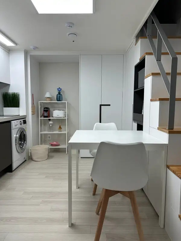 * Cheongnyangni Station 1 minute walk * Kyung Hee University, University of Seoul, and Hankuk University of Foreign Studies students live in a large residential environment * Dongdaemun 5 minutes, Myeongdong 15 minutes, Gwanghwamun 20 minutes, Gangnam 30 minutes * Seoul Sacred Heart Hospital, Korea University Hospital, Kyunghee Medical Center, and Seoul Samyuk Hospital * Friend trip, family trip, group trip, business trip, long/short temporary residence recommendation!! * Full options such as bed, washing machine, dryer, refrigerator, styler, bidet, etc * 19th floor new double-decker room (up to 6 people) It is a new two-story two-room house on the 19th floor and a 1-minute walk from Cheongnyangni Station anywhere in Seoul. White-tone interiors, wide windows, and high-rise views, complete with the latest appliances and ample storage space. It can be used for up to six people and is suitable for long- and short-term temporary residence. It's a pleasant space to spend time with friends and colleagues. *If there are more than 4 people, please contact us and we will set the bed. -Suitable for university students and researchers from Kyung Hee University, Seoul City University, and Hankuk University of Foreign Studies. -Seoul Sacred Heart Hospital, Korea University Hospital, Kyunghee Medical Center, and Seoul Samyuk Hospital are also convenient for medical visitors. -Living amenities such as Lotte Department Store, Lotte Cinema, and Mart are all adjacent. -Olive Young on the first floor of the next building and Daiso on the other side of the street, so you can easily shop for things you need for life * Full options such as bed, washing machine, dryer, refrigerator, styler, bidet, etc Occupancy and check-out are conducted non-face-to-face. After confirming the reservation, we will send you a message on how to check-in and how to use it. * Smart 50-inch TV (ott, YouTube only) *Parking requires prior consultation (pre-vehicle registration system). *Mechanical parking (no electric car, no SUV, no K9/BentzS size) *Additional discounts are provided for long stays. Cheongnyangni Station is a minute's walk, and it is convenient to use the subway 1 and Gyeongui Central and Subodang Line and KTX. It is 5 minutes away from Dongdaemun, 15 minutes from Myeong-dong, 20 minutes from Gwanghwamun, and 30 minutes from Gangnam, providing excellent access to major business and commercial areas. [Rules of use] -Please be careful of the noise as an apartment house. (If the noise is too loud, the management office will contact you.) -Please throw the trash into the garbage dump on the 1st floor -Indoor and outdoor smoking (including battery cigarettes and water cigarettes) in the building is prohibited. Fire detectors can be operated when smoking in the accommodation (including toilets and windows).