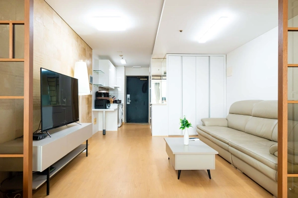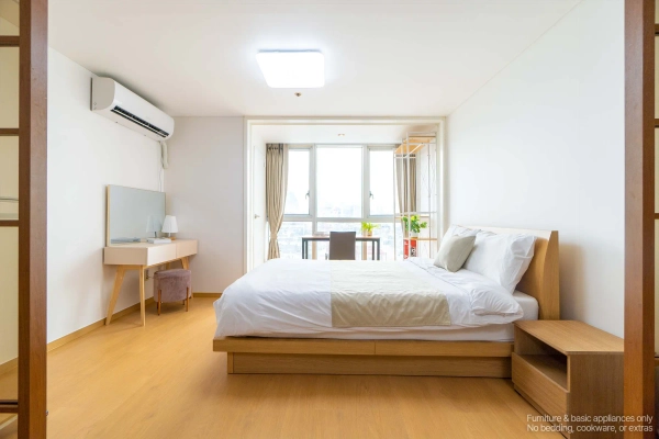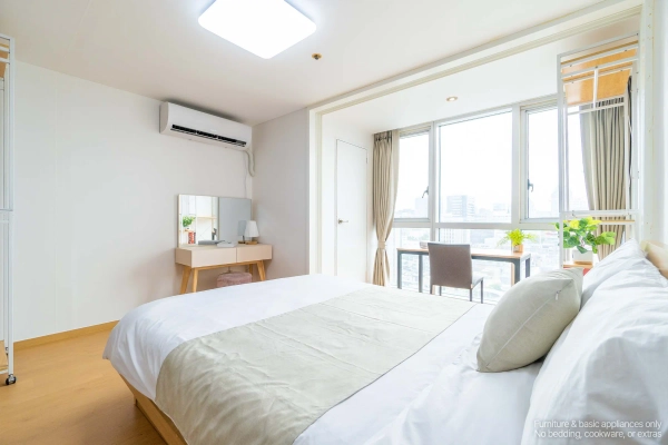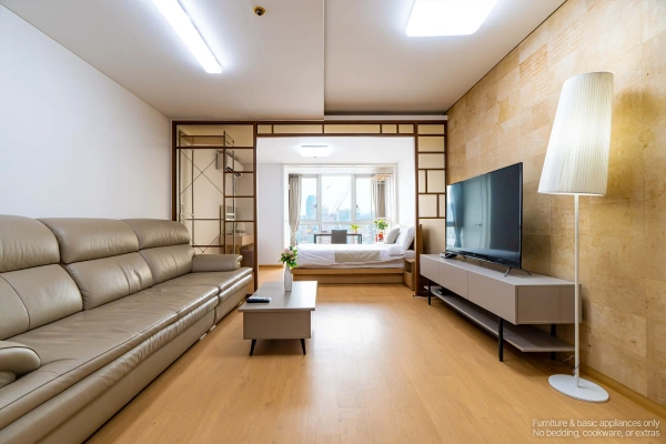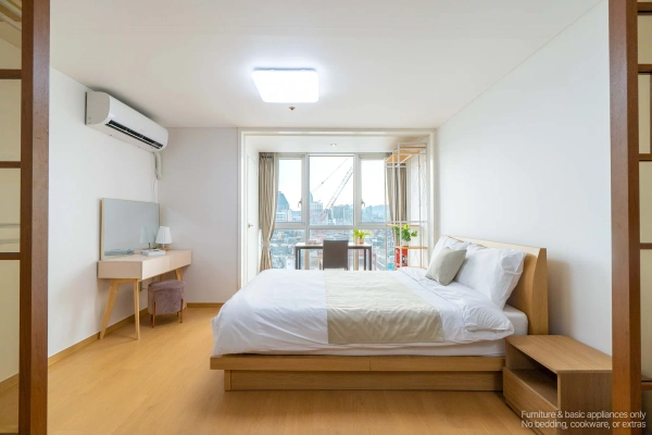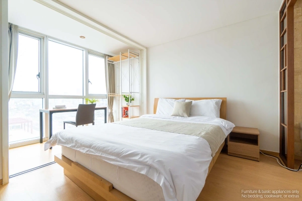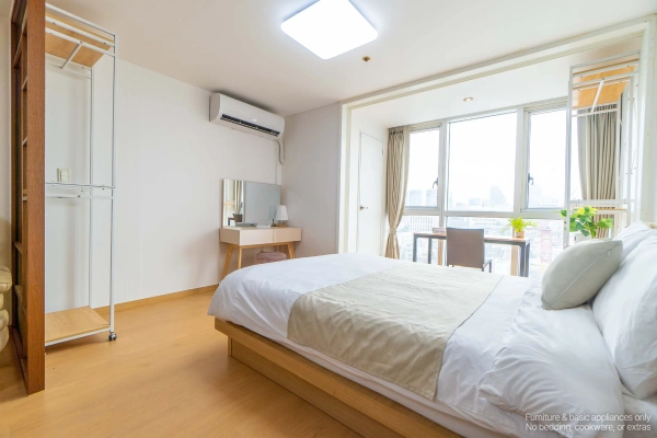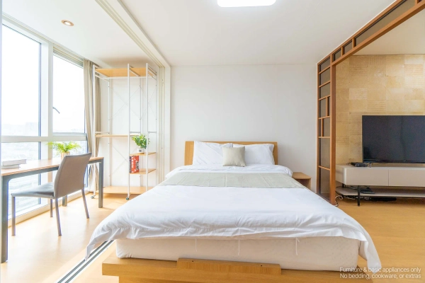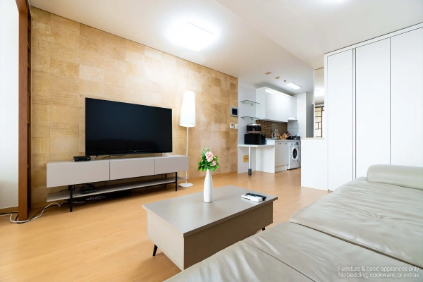 Your High-Floor Gangnam Retreat — A Top-Floor Studio at Miles Dioville Top-Floor Comfort with Open Views Being on the highest floor means more light, better airflow, and a quieter living environment. The studio layout is clean and efficient, perfect for solo professionals, business travelers, or long-stay guests who want a calm space after enjoying the city. Shape as You Wish, Stay as You Are Skip the hassle of furniture shopping. Your home comes complete with everything: stylish furnishings, smart TV, and even a washer. Want to adjust it to your lifestyle? With our customization service, you can add or remove furniture to make the space truly yours — because your home should feel like you. We Handle the Hassle, You Enjoy the Comfort With a professional management team handling maintenance and care, youʼre free to focus on what matters — whether thatʼs work, exploring Seoul, or simply enjoying peaceful time at home. Live Close to Gangnam’s Best Hotspots From trendy restaurants and cafés to nightlife streets around Sinsa and Nonhyeon, everything is just minutes away. Whether you're meeting friends, dining out, or heading to work, this address keeps you connected to Gangnam’s most active lifestyle zones. Flexible Stays for Global Residents We offer clear, flexible lease terms from one month onward — ideal for expats, professionals, and international guests seeking furnished living in central Gangnam. Ready to enjoy top-floor living in Gangnam? Just bring yourself — your stay at Miles Dioville begins here. * Photos were staged for photography; only furniture and appliances are included. Bedding and household items are not provided. * Photos were staged for photography; only furniture and appliances are included. Bedding and household items are not provided.