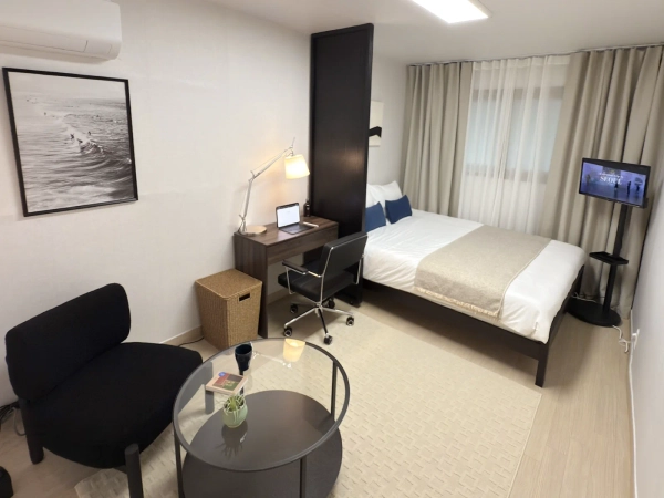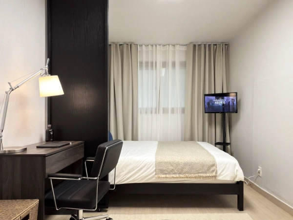 Spacious 1.5-room apartment with everything you need for a comfortable stay: Just 20 min by bus to Sungkyunkwan University and 8 min to Dongguk University. 🛏️ Cozy bed & relaxing atmosphere 🪞 Desk, vanity table, and clothes hanger for convenience 📺 TV & ultra-fast Wi-Fi for work and leisure ✨ Bright, clean, and well-furnished space Perfect for vacation, workation, or working holiday in Seoul. Enjoy both comfort and productivity in the heart of the city! 🌆