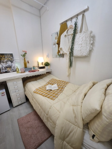 It is a convenient residence located 5-10 minutes walk from Jeongwang Station and near Hankuk University of Technology and Sihwa Hospital. There is a commercial district in the university district, so you can enjoy various foods. We conduct quarantine and disinfection every month, and we guarantee a safe and pleasant life by separating CCTV, entrance door locks, and male/female zones 24 hours a day. It has various amenities such as Wi-Fi, washing machine, dryer, public kitchen, induction, microwave, water purifier, coffee machine, ramen cooker, and ice maker, and provides free rice, ramen, detergent, shampoo, rinse, toothpaste, dryer, curling iron, coffee, and cereal. Hotel-style interior, quiet learning atmosphere, and 24-hour air conditioning system are always comfortable, and you can enjoy warm ramen on a nice day in the rooftop lounge. You can enjoy a safe and satisfactory life with reasonable monthly rent.