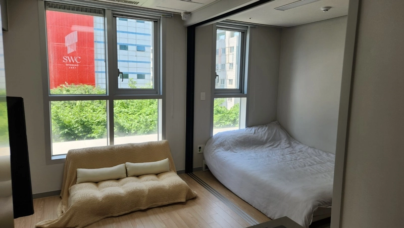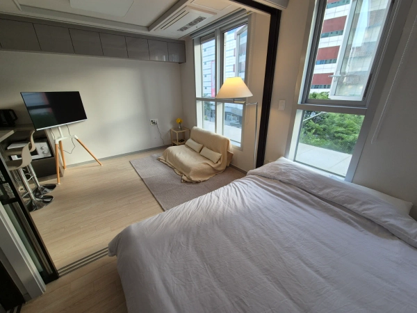 It is located close to Dongdaemun Market. The nearest station is Dongmyo Station and it's a one-minute walk away. No pets allowed It's a new building, so it's clean, security guards are always present, and security is good, so it's safe. Dongmyo Station 1 minute away Dongdaemun Market 10-minute walk Myeongdong Subway for 15 minutes Hongdae subway 25 minutes