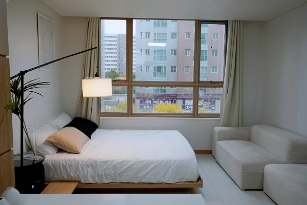 Best Value Stay with Easy Access to Gangnam & Cozy Hideaway - ✨ Your bright, private, and stylish retreat in Seoul! – Modern Comfort & Prime Location Wake up to sunlight streaming through wide windows, or close the blackout curtains for total privacy. This elegant studio is designed for comfort — with an island dining table, hotel-style bathroom, and a large movable TV for the perfect Netflix night. Ideal for solo travelers, couples, or business guests who want both convenience and calm. 🌟 Highlights ▶ 1-min walk to Gayang Station (Line 9) — perfect for commuting or exploring the city ▶ Main-road building with 24-hour security — safe and reliable stay ▶ Large windows + blackout curtains — enjoy privacy and daylight your way ▶ Fully equipped kitchen — cook comfortably like home ▶ Free essentials (tissues, dish soap) — no need for extra spending ▶ Guest-centered design — every detail built for your comfort - Check-in: 15:00 / Check-out: 12:00 (Please contact us if you need to adjust the time.) Self check-in is available for your convenience. Once your booking is confirmed, you will receive a message with full check-in and usage instructions. On the day of arrival, the building and room access codes will be provided via message. We kindly ask for your understanding that smoking indoors and pets are not allowed. - 🏠 Accommodation Features [Bedroom & Living] *1 Bed (Queen size) / 4 Pillows / Fresh Bedding *3-Seater Sofa / Island Table / 2 Chairs / Nightstand *42” Smart Google TV (Netflix, YouTube, Tving, Disney+) *Movable TV Stand + Cable Channels *Mood Lighting / Blackout Curtains *Closet / Hangers / Drying Rack / Full-Length Mirror [Bathroom] *Glass Shower Booth / Hair Dryer / Hand Sanitizer / Tissues [Laundry & Cleaning] *Drum Washing Machine / Laundry Drying Rack / Dryer / Basin / Squeeze - [Kitchen & Dining] *Appliances: Refrigerator, 2-Burner Induction Stove, Microwave, Coffee Pot, Toaster/ Rice Cooker *Cooking Tools: Frying Pan, Pot, Spatula, Ladle, Knife, Tongs, Scissors *Tableware: 2-person Dish & Cutlery Set, Wine Glass, Mugs *Other: Scrubber, Kitchen Detergent, Rubber Gloves - 📍 Location Highlights [Transport] 🚇 1 min walk: Gayang Station (Line 9) 🚉 20 min: Yeouido | ✈️ 25 min: Gimpo Airport 🚌 Direct access to Gangnam & Hongdae [Nearby Amenities] 🏪 Convenience Store: 1 min walk ☕ Café: 1 min walk 🥬 Local Market: 4 min walk 💄 Olive Young: 5 min walk 🍿 CGV Cinema: 7 min walk