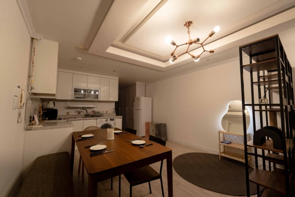This is a spacious 30sqm(approx. 320sqft) studio featuring a Queen-sized bed, making it perfect for up to two guests. It is fully equipped with kitchenware, a washer with a drying function, and a closet, so it's also ideal for long-term stays Non-Smoking Building (Entire building including balconies) No Unregistered Guests (Strictly for booked guests only) No Excessive Noise (Please be mindful of neighbors) The building features three elevators for your convenience, and paid on-site parking is available. Located on a main road, the area is very safe, with a police station right across the street. Bus Stop: 30-second walk (Right in front!) Ewha Womans Univ. Station (Line 2): 6-min walk Severance Hospital: 7-min walk Yonsei University: 10-min walk