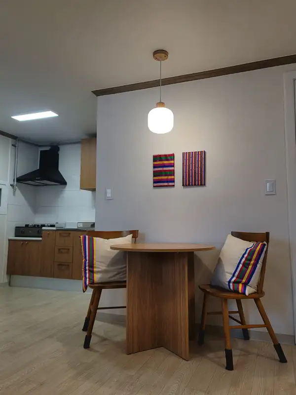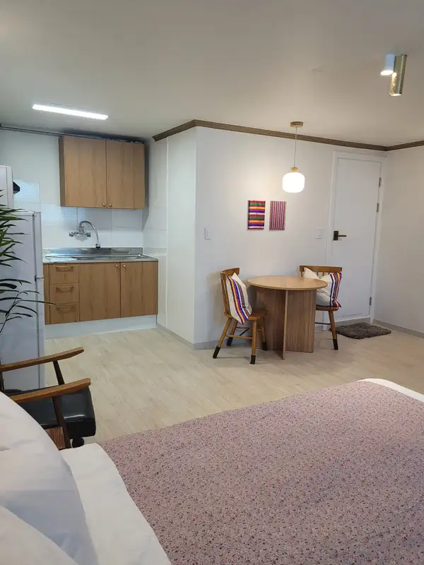 In Seoul’s vibrant HBC neighborhood, our newly renovated flat offers easy access to dining, bars, and local conveniences. With nearby public transit, you can reach top destinations like Myeongdong, Namdaemun, and the palaces with ease. This spacious studio combines modern comfort with subtle Korean flair, creating a unique and welcoming stay. Thoughtful touches throughout blend traditional charm with contemporary design, giving you the perfect fusion of culture and comfort for your Seoul adventure. The studio features a full kitchen, a newly renovated bathroom—rare to find in HBC—and plenty of living space. A Green Town bus stop is just a 2-minute walk away, providing direct access to Subway Lines 1, 4, and 6. Private Entrance: You’ll have a separate entrance and won’t need to share any space—everything in the studio is all yours.