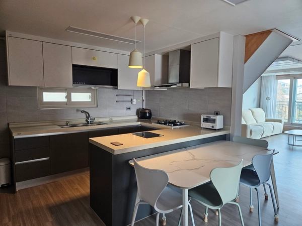 In addition to three bedrooms, a spacious living room, and a kitchen, there are a wide attic and terrace, so you can stay without any inconvenience It has a spacious 6-8-person table, 85-inch TV, and recliner sofa, making it easy to watch movies or Netflix