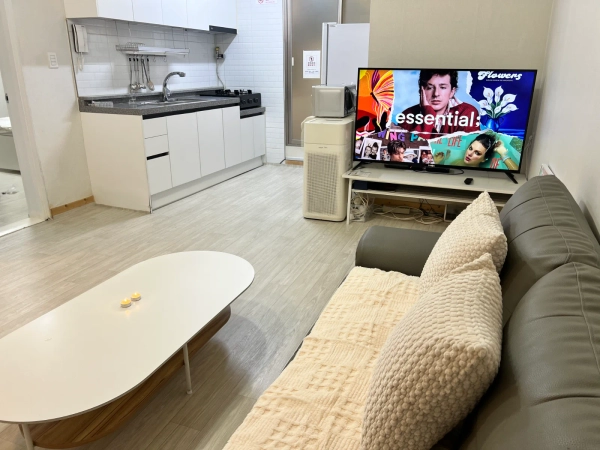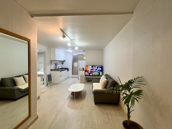 [Why You’ll Love This Place] A quiet and safe neighborhood near a school, plus the subway is just a short walk away. We’ve been hosting on Airbnb for over 5 years, so cleanliness and comfort are something we truly care about. Even though it’s a lower-ground unit, lots of windows make the space bright and airy. It’s a cozy, easy place to relax and feel at home — especially for longer stays. ⚠️ Guest Policy If your group size exceeds 4 guests, please inform us in advance before booking. 🏠 About the Space Located just a 7-minute walk from Baekseok Station, this is a quiet, cozy, and fully residential stay. With a 70㎡ (753 sq ft) layout and 2 separate bedrooms, the space feels very spacious for two guests and can comfortably host up to six people. We take cleanliness seriously — clean, tidy, and comfortable living is guaranteed. 🛏️ Bedrooms & Living Area • 2 bedrooms (bedding provided based on the number of guests) • Spacious living room with a comfortable sofa • TV with Netflix available 🍳 Kitchen, Dining & Laundry • Cooking and dining are fully allowed and hassle-free • Fully equipped kitchen with basic cookware (pots, pans, etc.) • Microwave, dishes, cups, and cooking utensils provided • Hand-drip coffee equipment available • Washing machine & drying rack for laundry • Vacuum cleaner provided -Pets are welcome. Please inform us in advance. -Parking is available. Advance notice is required. -Please inform us in advance if the number of guests exceeds 4. -No smoking inside the unit -Please be respectful of neighbors and keep noise to a minimum, especially at night. The building is located very close to the subway station, making transportation easy and convenient. With a school right across the street, the neighborhood feels very safe, quiet, and free from noise. Well-managed, clean, and well-maintained, creating a pleasant living environment. Inside, the spacious living room offers plenty of room to relax, with no sense of crowding or confinement.