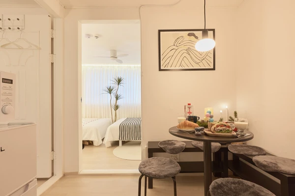 <designer-run a comfortable and sensual accommodation> "free parking" "Sindaebang Station on Line 2 for 6 minutes and Yeouido and Hongdae for 15 minutes! Cozy 2 rooms for up to 4 people" "Best accommodation for family and friends" "Line 2, anywhere, 20 minutes" "A convenient transportation destination for business trips" "A cozy bedroom and a cozy living room" We have two cozy bedrooms, a cozy living room, and a comfortable space for up to six people to stay together. Family, friends, and business trip are all satisfied Clean bedding & air conditioner, sealing fan, dehumidifier, air purifier a complete kitchen and dining area
