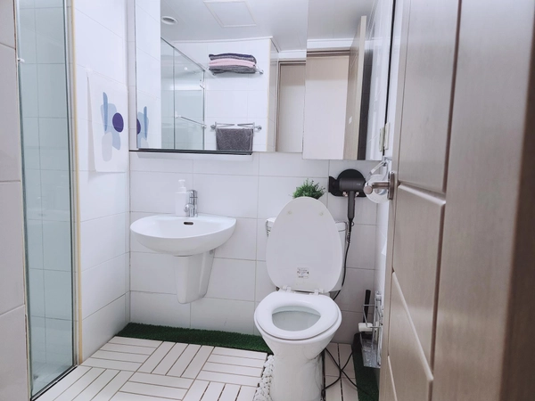 It is located 8 minutes walk from Sungkyunkwan University Station on Suwon Line 1. It is convenient because it is close to Sungkyunkwan University's natural science campus and there is a parking lot in the building. There is a large window in the living room and there is no building covering the front, so the sense of openness is very good.
