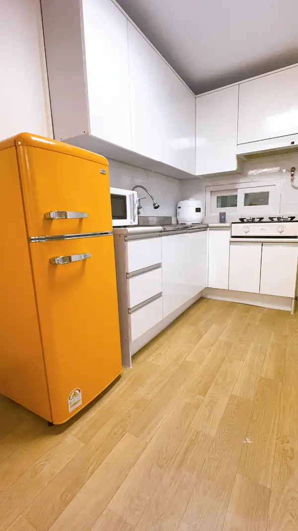 Welcome to Korea! Our Seodaemun Studio is located a 5-minute walk from Jeungsan Station on Seoul Subway Line 6. If you go down 5 steps from the common hall, you'll see room 102, and you'll use a single room It has three rooms, one bathroom, and two queen-sized beds Wi-Fi is installed for high-speed Internet access, and there is a kitchen and table for solo use