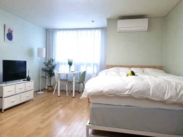 🌿Lucky House Open Event🌿 😎Information on special offers for January😎 If you enter from January 22nd to January 28th, you can get a discount of 270,000 won per week. If you want to book within this period, please message me! ▪︎ 5 minutes walk from Dangsan station ▪︎Full optional 1.5 room with 2 queen beds, TV, refrigerator, washing machine, free WIFI, etc ▪︎ Various convenience facilities necessary for daily life such as tableware and laundry detergent are prepared 💫 We've prepared a space where you can stay as comfortable as possible! There are various hot place restaurants and cafes within a five-minute walk. We welcome those who want to enjoy the Dangsan atmosphere🙌🏻 🌟TV Cable Broadcasting (X), Google Chromecast (O) OTT such as Netflix can be used as a personal account 🌟 Moving in will be conducted non-face-to-face -Check-out 11 a.m./Check-in 15 p.m -The password and occupancy information will be delivered on the morning of admission 🌟No smoking, no pets, no parties 🌟 Up to 3 people can use it comfortably -There is an additional 20,000 won for three people. 🌟It's an apartment house, so please be quiet after 10 p.m. ✔️ Violation of the above may result in termination of the contract without refund. [Optional] -Rooms: 2 queen beds, 2 semi-circular table sets, stand lighting, 32-inch TV (OTT, YouTube, cable channel available) and more -Kitchen: Tableware Set for 4 People, Glass Cup, Mug, Glass Cup, Wine Opener, Frying Pan, Pot, Rice Cooker, Water Purifier, Electric Pot, Microwave, Drawer, etc -Toilet: shower booth -Others: Washing machine, laundry drying rack, small humidifier, steam iron, electric pad, etc