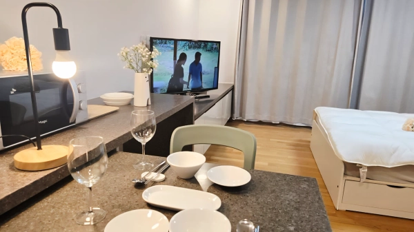 - It's a 5-minute walk from the Sports Complex Station on lines 2 and 9. - Starbucks, Burger King, Daiso 1 minute walk, CU convenience store on the 1st floor of the building: It's all within walking distance of wearing pajamas. - It is located at the end of Jamsil Saenae Food Alley, so there are many good restaurants and it is close enough, but it is not too loud. - Moving in will be conducted through a non-face-to-face self-check-in. - Indoor smoking and companion animals are not allowed. (Special Office consumption will be added.) - Visitors other than tenants are prohibited from staying. - Be careful not to let your hair get into the sink. -There are many generations living in this place, so please be careful of the noise between floors - It's a 5-minute walk from the Sports Complex Station on lines 2 and 9.