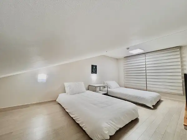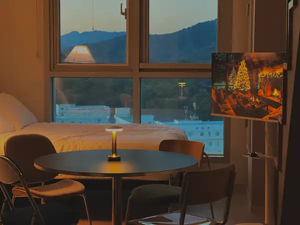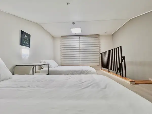 If you can't miss both location and emotion, this is the correct answer! It is a space that is satisfactory for business trips, short-term study abroad, and travel with a high-rise four-person multi-story structure and a modern atmosphere given by black and white interior. The wide table is perfect for study and work, and at night, mood lights and city views release the fatigue of the day emotionally. 📍 After 03:00 PM when entering the room 📍 Check-out 11:00 AM 📍 Free parking (pre-registration required) ▪️ Delivery of the accommodation guide when the reservation is confirmed ▪️High-speed wifi available ▪️B1F Security Office 24 hours a day ▪️ Can be cleaned in the dormitory ▪️All OTT uses are available as guest accounts ▪️Netflix, YouTube, Disney Plus, Coupang Play, etc ▪️ Convenience store, Starbucks, adjacent to convenience facilities ▪️ High temperature sterilization wash every time, thorough hygiene management a ✓ bedroom Smart TVs (various OTTs), LG Tromm washing machines, LG system air conditioners, boilers (ondol), vacuum cleaners, queen beds (150x200), super single bed 2 (110x200), round table, chair 4, narrow table, laundry drying rack ✓ kitchen LG Built-in Refrigerator, Electric Rice Cooker, Microwave, Electric Pot, 2-Outlet Induction, Kitchen Ventilator, Korean Foodware Set 20P or More, Cutlery Set, Ladle, Flipper, Knife, Scissors, Glass Cup, Soju Cup, Beer Cup, Pot/Pan Set, Stainless Steel Strainer, etc. Can be lived immediately a ✓ bathroom Shower/toilet/washroom hotel-style separation, doctor's PL filter water pressure rising shower, hair dryer ✓ Important notices • Moving in is not possible. • The entire building is non-smoking. • Your pet is not allowed to enter. • According to the regulations, you have to prepare personal hygiene products separately. • We are not responsible for the loss of valuables. • Damage incurred (smoking, pet, damage) will be deducted from the deposit. 📍 1-minute walk from Hanmaeum Hospital 📍 10-minute walk from KTX Changwon Central Station 📍 10 minutes walk from Changwon University 📍 Three minutes of vehicles from Gyeongnam Provincial Office and government offices 📍 7 minutes car in Sangnam-dong, Bunwa-ga, Changwon 📍 Bus stop right in front of the officetel 📍 Best location to move to major areas such as Masan, Jinhae, and Busan