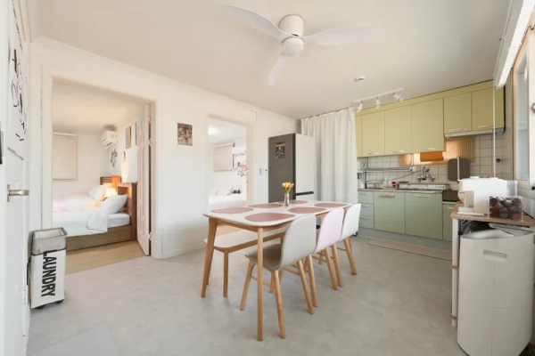 Stay Features & Benefits Prime Location: 8 mins walk to Sinchon & Ewha stations, 5 mins to airport bus—easy access across Seoul Comfortable Space: Equipped with projector, terrace, and cozy bedding for a home-like stay Cleanliness Priority: Thoroughly cleaned by professional services before every stay Amenities Included: High-speed Wi-Fi and a fully equipped kitchen to support work and relaxation House Rules Check-in after 3 PM / Check-out by 11 AM No smoking or pets inside the property Please sort and dispose of trash properly Keep noise to a minimum and respect neighbors