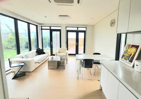 Looking for a private house with a green-grass garden near beach in Jeju? This is the PERFECT place for you! Also tourist spots such as O'Sulloc, Shinwha World Resort, Jungmun Tourist Complex, Hwasun Gotjawal, Mt. Sanbang, Mt. Song-ak, Sagye Beach, Golden Sand Beach, Dragon Head Coast, Carbonate Hot spring, Andeok Valley, Gunsan Orum, Marado and Gapado! Only 5min walk to Hanaro Mart, bakeries, cafés, pubs, gourmet restaurants & hospitals . Max 6 persons! Fully furnished with FREE WIFI! Garden BBQ available! Kakaotalk ID: gompey WhatsApp: +82 10-3584-5975 (Martin)