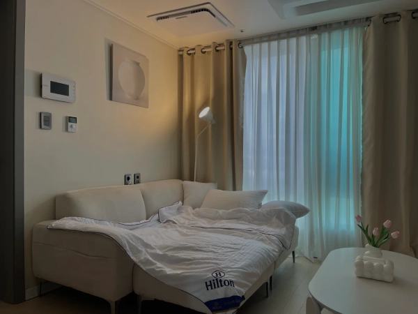 Nuaz11 is a modern stay with the concept of a cloud-like resting place floating in the center of the forest. The city view overlooking the 11th floor, sensuous lighting and modern minimal interiors present a quiet and private day. ✔️Places suitable for couples, solo trips, and business trips ✔️ Hotel-class bedding & latest home appliances ✔️ Elegant lighting mood, relaxing like clouds ✔️ Emotional interior good for photography and video shooting [Check-in: 14:00 / Check-out: 11:00] 💕Please clean up briefly when you leave (separate trash and dispose of food) ⚠️ Never smoke (penalty) — including veranda/toilets Don't go to high-pitched singing late at night Companion is not allowed Allow outside visitors after prior inquiry Nuaz 11 is located in a quiet alley with well-equipped residential and commercial areas near Sillim Station It's a location where you can take care of convenience and privateness at the same time. ⭐ Convenience facilities Sillim Station is 3 minutes away! a 30-second walk to a convenience store 1 minute walk Starbucks, Olive Young, Daiso, Sillim Starlight Street (cafes and restaurants concentrated) Sillim Station Time Stream, Renaissance Street, Dorimcheon Stream Promenade! Relatively safe and quiet residential atmosphere even late at night Delivery food options are very wide (Sillim/Gwanak-gu-centered commercial district) 🌙 The atmosphere It's close to the main street, but it's quiet around the hotel. Especially private at night You can enjoy city view and night view from the 11th floor 🚇 Subway Sillim Station (Line 2) 3 minutes away 15 minutes in Gangnam, 20 minutes in Hongdae, 30 minutes in Myeongdong 🚌 Bus Airport bus 5 minutes away from the dorm! Sillim-ro and Sillim Intersection are rich in major trunk/jisun buses → Easy to move to major areas such as Gangnam, Yeouido, and Yeoksam 🚕 Taxi/Vehicle There's a lot of traffic in the taxi in front of the hotel Mechanical parking available in the building!