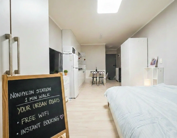 部屋の構造を見ることができるYouTubeアドレスを添付します。 ご参考お願いします!✨ https://youtu.be/Lm7-6NfWOAA 💎 [論峴駅4番出口から1分]盤浦洞プレミアムホワイトスタジオ🏠✨ 「ロケーションは究極の贅沢!」😎利便性のクライマックスを体感しましょう! 論峴駅(7号線·新盆唐線)前の4番出口に位置するプレミアムホワイトトーンスタジオは、完璧な都市生活を提供します。 🚀無敵位置: 論峴駅4番出口からすぐです! 最高利便性: 地下鉄まで徒歩1~2分です。 毎朝貴重な時間を節約しましょう! 新盆唐線を経由して江南駅と板橋に直行します。 🚄 安全で安全:メイン道路のすぐ後ろに位置し、夜遅くでも家に帰る道は明るく安全です。 女性一人旅におすすめです! 🛡️ 🏠インテリア詳細(オールインワン) スタイリッシュなホワイト家具とグレートーンの壁紙は、どんなスタイルにもマッチするモダンで清潔な雰囲気を演出します。 リビング: 6人用の大きな引き出しで、大きなテレビと十分な収納スペースを確保できます。 キッチン:ホワイトキャビネット、IH調理器、洗濯機、電子レンジ、清潔な冷蔵庫が完備されています。 🍳 リラクゼーション: 快適なホワイトフレームベッドとプレミアムブラックカーテンで深い夜をお過ごしいただけます。 😴 🌳ライフスタイル&ネイバーフッド(ホットスポット) 盤浦漢江公園:自転車ですぐです! 月光虹噴水を見ながら「チキン&ビール」を楽しむのに最適です。 🌉🍗 カロスキル: 新沙洞のトレンドカフェやショッピングメッカ周辺のホットスポット探訪です! ☕🛍️ 江南フードストリート:永同市場と論峴フード路地のすぐ隣です。 素晴らしい食事の選択肢が決して不足することはありません。 🍱🍻 🛒基幹インフラ コンビニ·食料品店: 大手コンビニやスーパーは徒歩3分以内です。 🏪 医療: 論峴駅周辺の診療所(医療、歯科)と薬局が密集しており、安心です。 🏥 自己改善: 近くには、ライフスタイルをサポートできるジムやピラティススタジオ、スタディカフェがたくさんあります。 💪📚 🚦輸送拠点(7号線·新盆唐線) 地下鉄二重線: 7号線:加山デジタル団地、建国大学入口、江南区庁に直通します。 新盆唐線: 江南駅まであと1駅です! 板橋や光州に30~40分で到着します。 バスネットワーク: 江南大路バスレーン:2分距離。 ソウル行きのバスと京畿道(キョンギド)行きの高速バス(盆唐、龍仁、一山、仁川)はここに止まります。 🚌 🚫下院規則(厳格施行) 室内では禁煙です。 🚭 ペット禁止。 🐶🐱 パーティーや大きな騒ぎはありません。 🚫 違反は罰金と即時退去をもたらします。 部屋の構造を見ることができるYouTubeアドレスを添付します。 ご参考お願いします!✨ https://youtu.be/Lm7-6NfWOAA