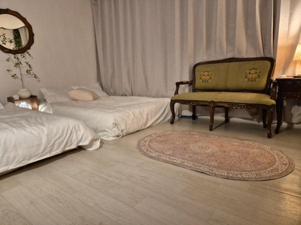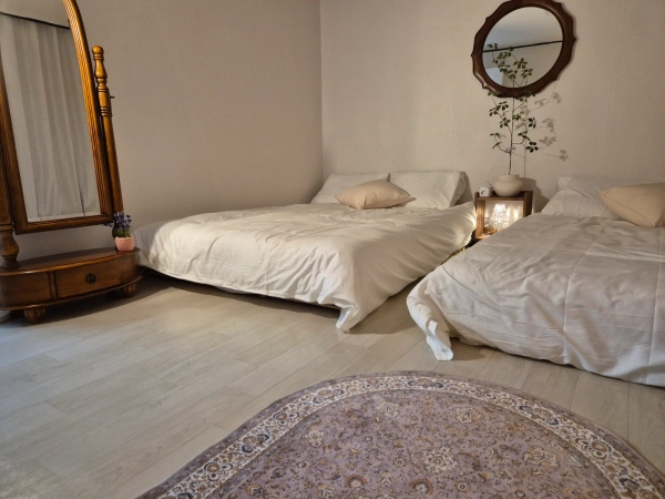 ルルステイは地下鉄7号線中谷駅から徒歩6分の距離に位置しています。 建国大。世宗大。 漢陽大学。ソイル大学が近いです。 1.5階の1階なので快適です 周辺の商圏は2分の距離にコンビニと食堂があります。 ルルステイの最大の特徴は、プライベート空間であり、庭があって自由に外でも食事を楽しむことができ、電源があって移動式テレビも視聴することができます。 部屋1つはクイーンベッド2つ、部屋1つはキングベッド1つです。 快適にお休みいただけるよう、遮光カーテンとブラインドが設置されています。 キッチンは6人が使える食器類と調理道具2口IHです。 トースター。 電子レンジがあります。 トイレ兼お風呂には洗濯機です。 乾燥機があります。 シャンプー。コンディショナー。 ボディーシャワーが備えられています。 長期宿泊に便利なようにスチームアイロン。 掃除機。分別箱。 ヘアドライヤーがあります。 予約の際に必要な物品をおっしゃっていただければ、調整後に備え付けることができます。 ペットは許可されていません。 ゲスト以外のお客様は出入りできません。 周辺は静かな住宅街なので、夜8時以降は騒音にご注意願います。 地下鉄7号線中谷駅から6分 ### 3人基本で1人追加する場合、日10,000ウォン追加。