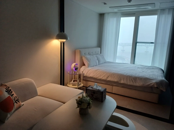 広安大橋と海が一望できる高層オーシャンビューステイです。 エレガントな間接照明、すっきりとしたインテリア、ゆったりとした収納空間、そして長期宿泊に必要なすべての便益施設を備えており、快適で品格のある休息を提供します。 建物内では絶対禁煙、ペット同伴入室禁止(摘発の場合、過料及び清掃、消毒費用15万ウォン) 家具·什器移動式賃貸終了前の原状復旧 建物地下1階にゴミ分別場 チェックイン:午後4時 チェックアウト:午前11時 標準宿泊人数:2人(車の宿泊人数:1泊当たり10,000ウォン) 早い入室、遅い退室は事前に協議が必要です。(清掃日程の確保など) 予約が確定しましたら、チェックインの指針とともに歓迎メッセージをお送りします。 ゲスト駐車は地下2階から可能です 先着順の無料駐車で、一ヶ月以上の契約により無料駐車が可能です。 広安里海辺まで徒歩3分 広安里の海辺で最も人気のあるミラクルザマーケットの隣、水辺公園やきれいなカフェなど、ホットプレイスのラウンジバーが利用でき、広安里の水産市場の近くで新鮮な刺身と海産物が味わえます。 毎週土曜日夜2回ドローンショー実施 広安里海水浴場徒歩3分 市内バス徒歩3分 広安駅まで徒歩20分 金海国際空港 自家用車(タクシー)40分所要 KTX釜山駅車(タクシー)30分所要