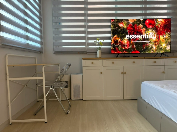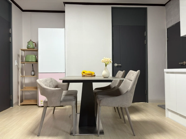新しくリニューアルしたきれいで居心地の良い家です。 庭のある3ルーム構造で、前の花壇には木蓮が咲いており、屋上にはカリンが開く情感のある空間です。 リビングには食卓が用意されており、トイレには新しいドラム式洗濯機を備えておきました。 部屋1にはクイーンサイズのベッド1台(テジンシルタベッド)、部屋2にはシングルベッド1台(シモンズ)、部屋3にはシングルベッド2台(イケア)を配置し、最大5人まで快適に滞在することができます。 ホストが非常に近い場所に居住しているため、迅速な応対が可能であり、宿泊施設のすぐ前に駐車1~2台が可能です。 ありがとうございます。 - 入居は非対面で行われます - 入室当日、詳細な住所とパスワード、Wi-Fiなどの情報を提供します。 - 入室時間午後4時以降、退室時間午前11時までです。 - 宿所は学校と隣接した静かな住宅街に位置していますので、 夜9時から翌朝7時までは、お隣さんを気遣うマナータイムをお願いします。 - 当宿は転入届ができない点、ご了承お願いします。 - 快適な環境維持のため、室内での喫煙やペットの同伴は丁寧に制限しています。 - 該当事項が確認された場合、やむを得ず追加清掃費用が発生することがあります。 - 駐車は1台または最大2台まで可能です。 - 宿の近くにホストが住んでいるため、ご利用中に不便な点がございましたら、お早めにお手伝いいたします。 - 快適にお泊りいただけるよう、宿の清潔管理に細心の注意を払っています。 -短期賃貸宿泊施設の特性上、トイレットペーパー、タオル、シャンプー·コンディショナー·ボディソープ、洗剤及び柔軟剤は別途提供しておりません ご了承ください. - 寝具類は、ご希望の場合、追加料金でご用意しております。 -ロッテ百貨店スターシティ店、イーマート紫陽店など大型ショッピング施設利用可能 -紫陽洞ヤンコチ通り、コンデ(建大)グルメ横丁、クイ(九宜)駅グルメ横丁近くにあります 家の位置も子供大公園と滋養市場、漢江公園ともに近くてとても便利で良かったです (笑) -江辺駅、建大入口(2号線、7号線)、聖水駅(2号線)、峨嵯山駅(5号線)が近く、様々な路線が利用できます