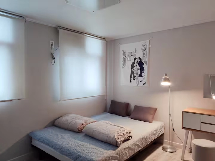 全南大学校の近くに位置する広々とした家で、より長く快適に過ごしたい学生や専門家に最適です。 宿泊施設は寝室2つ、バスルーム1つ、リビングルーム1つ、キッチン完備で十分なスペースを提供します。 最大4名様までご宿泊いただけます。 • ベッドルーム1:クイーンサイズベッド1台、バニティテーブル、ヘアドライヤー、テレビ • ベッドルーム2:スーパーシングルベッド1台、デスク、椅子 お客様の人数に応じて、折りたたみ式のエキストラベッドをご用意できます。 (基本料金は2名様です。 3名様から清掃·管理費が別途かかりますので、3名様以上でご宿泊の場合は事前にご連絡をお願いいたします。) この家には、必要不可欠なキッチン用品や家電製品が完備されています。 • 各部屋エアコン、扇風機、電子レンジ、電気ケトル、トースターオーブン、冷蔵庫、洗濯機 • 基本的なシャワー設備を提供しています 駐車場 無料駐車場は建物の前やすぐ隣の公営駐車場でご利用いただけます。 駐車場がいっぱいでも、近くの路上駐車は大抵見つけやすいです。 下院規則 ペット禁止 館内での喫煙は厳禁です 11時以降は騒音を最小限に抑えます 建物内にエレベーターがあります。 家は全南大学校から近く、徒歩3分のところにバス停があります。 スーパー、コンビニ、パン屋、カフェなどが徒歩3分以内にあり、日常生活がとても便利です。