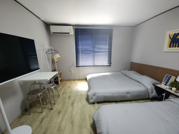 【★入室·退室時間自由★】 - 奥の間クイーンサイズベッド2台、小部屋クイーンサイズベッド1台が用意されており、最大6名まで利用可能で、生活に必要な基本オプションが備わっていて便利に過ごすことができます。 - 各部屋ごとにエアコンが設置されており、清潔管理を最優先にして清潔で快適な環境を提供します。 - 内部に備え付けられている物品は基本的な提供オプションであり、退室時にはお持ち帰りいただけません。 - 快適な環境のため、室内での喫煙は絶対禁止であり、ペットはいけません。 - 近所の住民の方々に迷惑がかからないよう、騒音に注意していただきたいです。 📍テレビ冷蔵庫 洗濯機 電子レンジ 電気ポット ドライヤー エアコンベッド 各部屋のハンガーやテーブルなどフルオプション 📍 基本食器セット、調理道具類を備えている 📍スマートTV、ネットフリックスなどのOTTサービスは、個人ログイン後に利用可能です 📍海と風がよく入る南向きで、安全のために玄関にCCTVを設置された安心の建物👍👍 📍水道電気の過剰使用は、追加料金が発生することがありますので、外出の際の冷暖房電気設備は必ずオフにしてください。 📍📍チェックアウトの際にお持ちの食品およびゴミの整理をお願いします。汚染を毀損した場合は賠償責任があります🙏 -建物が古くて防音が完璧でない場合があります。 -エレベーターがない2階建ての建物です 🚶 徒歩の場合の便益施設 🥨 CUコンビニ3分以内 🍚 食堂·マート 徒歩 5~10分 ------- 🚗車基準主要拠点 🚌 浦項市外バスターミナル 車10分 🚅 浦項 KTX駅 車 15分 🏫 浦項工科大学 車15分 🏖 迎日台海水浴場 車20分 🏖 九龍浦海水浴場 車25分 🏥浦項キリスト病院·聖母病院 車10分 🏞慶州遺跡車両25