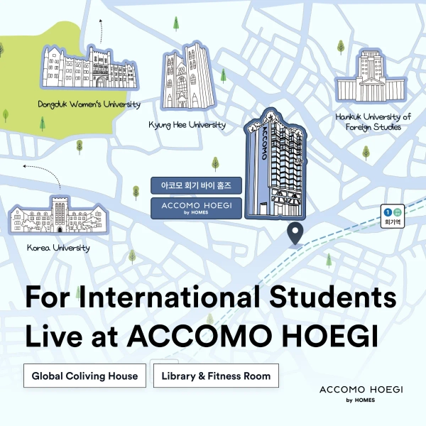 ACCOHOEGI by HOMSE | 短期·長期滞在可能 ACCOHOEGI by HOMSは、ソウル特別市東大門区の会基駅近くにあるモダンなオフィステルである。 慶熙大学、高麗大学、韓国外国語大学などの近隣大学へのアクセスが優れており、特に留学生、外国人、専門家に適している。 ✔共用施設 🏋️♂️住民専用フィットネスセンター 📚静かな図書館/自習室 🍳共用キッチン 🧺 ランドリールーム 🌇都市景観のオープンルーフトップ ✔客室機能 フル装備&装備 短期契約あり インターネットおよびテレビ付き プロフェッショナルな管理による安全な建物 ソウルで快適で安全で設備の整った場所をお探しなら、 ホームズによるアコホエギは素晴らしい選択です。 詳細については、いつでもお気軽にお問い合わせください!