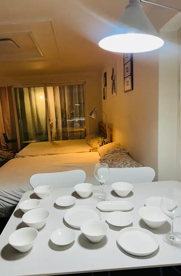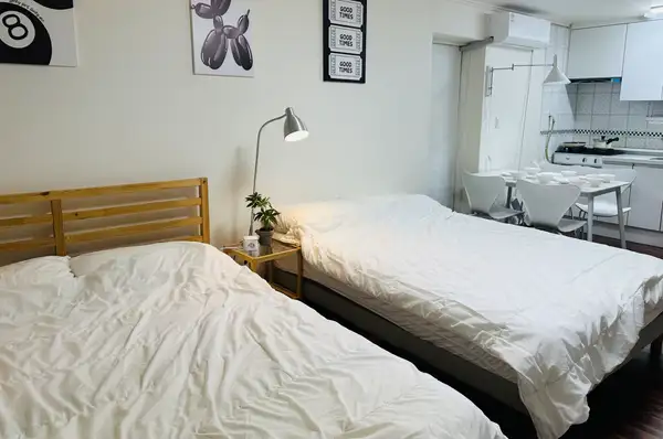 🌿メゾンベランダガイド 🛏スペース情報 メゾンベランダにはクイーンサイズのベッドが2つ用意されており、2人のゲストにとって非常に快適で、最大4人のゲストにとって十分な広さがあります。 以下のゲストに最適です: • 🚉地下鉄駅が近くにあり、ソウル周辺へのアクセスが便利です 新沙駅(3号線·新盆唐線) 徒歩3分 • 論峴駅 (7号線) 徒歩6分 • 🎒荷物を持って簡単に到着できる完全装備の家が欲しいです ✨最近リニューアルして綺麗になりました ✨明るく快適なバスルームです ✨仕事、ダイニング、居心地の良いホームカフェに最適な大型セラミックテーブルです ⸻ 🍽アメニティ 🛋アプライアンス • エアコン • 洗濯乾燥機 • 冷蔵庫 • マイクロ波 • 電気ケトル • 40 インチ Samsung スマート TV • 無料Wi-Fi 🍳調理器具 • フライパン、鍋、まな板、キッチンツール • 調理用セットアップ 🍽食器 • 食器 4点 • ワイングラス 🛌快適滞在 • クイーンサイズベッド2台 • 清潔、柔らかいマットレス • 40 インチ Samsung スマート TV (OTT アクセス) ⸻ 🏠ハウスルール • 16:00以降チェックイン • チェックアウト13:00前 チェックインの時間を調整する必要がある場合は、少なくとも2日前までにご連絡をお願いします。 • 室内禁煙 • ペット禁止 ⸻ 🏪近隣便利 徒歩3~4分以内: コンビニ·食料品店·オリーブヤング·ダイソー·スタバ☕ カフェ、レストラン、診療所、有名化粧品クリニックに囲まれています🌿 必要なものはすべて近くにあります。レストラン、病院、薬局などです。 ⸻ 🚇交通機関 • 新沙駅(3号線·新盆唐線) 徒歩3分 • 論峴駅 (7号線) 徒歩6分 • 江南駅までバスで10分です • 高速バスターミナルまで12分(地下鉄·徒歩) • 空港リムジンバス6009号 徒歩5分 • カロスキル·セロスキル徒歩圏内 • 新世界江南付近、現代百貨店狎鴎亭店、ニューコアアウトレット、キムズクラブ ⸻ 🤍 メゾンベランダは、休息、旅行、ビジネスなど、あなたの滞在が暖かく、快適で、簡単に感じられるように注意深く準備されています。 ご不明な点がございましたら、お気軽にお問い合わせくださいませ。 あなたの親切なホストはすぐにあなたに戻ってきます 😊