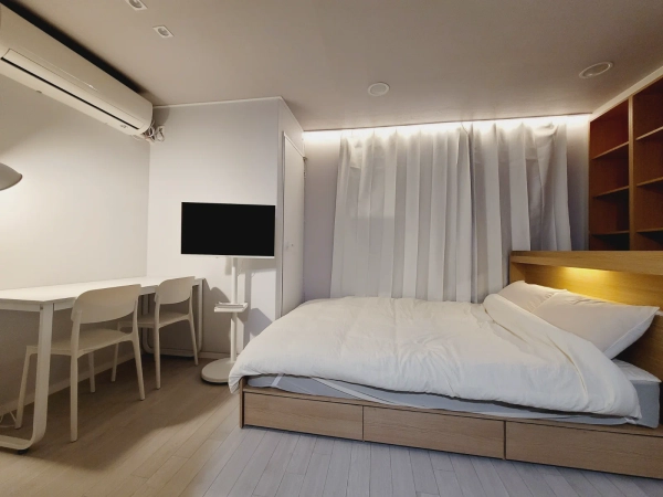 🏡南向きなので日当たりが良いです 🏡蚕室駅 徒歩7分 🏡モンチョントソン駅 徒歩4分 🏡漢城百済駅 徒歩7分 🏡個人の荷物だけ持って来ればすぐに生活可能です ベッド、電子レンジ、スタンバイスマートテレビ、乾燥機能付きドラム洗濯機、 2人用テーブル、遮光カーテン、エアコン、電気ポット、炊飯器、冷蔵庫 個人用ガスボイラー 床暖房など 👉必要な部分をお知らせいただければ、クーパンでお送りいたします ⏰ チェックイン 15:00 ⏰ チェックアウト 11:00 ℹ️入居は非対面で行われ、契約が確定しましたら入居前日に利用案内のメッセージをお送りいたします ℹ️ご入室の人数は最大2名で、家具および備品は退室時に元の場所に戻してください(追加料金はございません) ℹ️ 転入届はできません ℹ️部屋内での喫煙はご遠慮ください ℹ️物品の破損や汚染があった場合、損害賠償費用が発生することがあります 周辺施設 👮警備員が24時間常駐しております(深夜はセキュリティカードなしでは入場できません) 🏬建物の1階にはコンビニ、カフェ、飲食店などの便利な施設が多くあります ☕徒歩5分圏内にダイソー、スターバックス、メガコーヒーなど多様な文化施設が多数あります ☕ソクチョン湖 徒歩6分 ☕オリンピック公園 徒歩7分 ☕バンイドン飲食街 徒歩3分 ☕漢江公園も近くにあります 🚶蚕室駅 徒歩7分 🚶モンチョントソン駅 徒歩6分 🚶バス停 徒歩1分 🚉江南駅から20分 🚉高速ターミナル駅から30分 🚉汝矣島駅から40分 🚉アサン病院 12分
