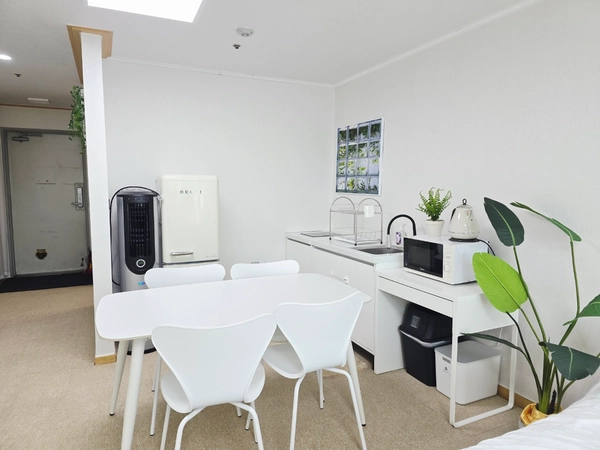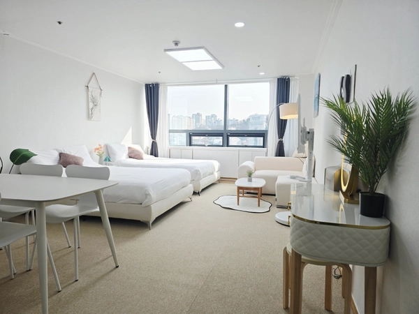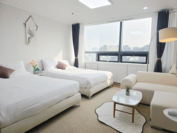 🎁 オープン記念プレゼント🎁 ご予約いただいた方への特別な特典です!ベッドリネンを入居記念のプレゼントとしてご提供いたしますので、お早めにご予約くださいませ! 🤍 ステイ紹介 ✔️ 清潔感のあるホワイト&ベージュトーンのすっきりとした広いワンルームで、クイーンサイズベッド2台と1人用の簡易ベッド、4人用のダイニングテーブルがあり、多くの人数が滞在するのに十分です。 ✔️ 地下鉄2号線および都市空港鉄道弘大入口駅と直接つながっており、交通が便利です ✔️ レストラン、パブ、カフェなど各種の便利施設があり、生活がとても便利です ✔️ 明るく開けた眺望と素晴らしい夜景を誇り、特に遠くに南山タワーもご覧いただけます! 💛 入居案内 ✔️ 入居は非対面で行われます。 ✔️ ペットの同伴はご遠慮いただいております。 ✔️ 集合建物のため、室内での喫煙は禁止されております。 周囲の世帯に喫煙や騒音などによる被害が及ばないようご注意ください 📌 契約が確定しましたら、入居の3日前に利用案内のメッセージをお送りいたします。 💚場所 ✔️ 地下鉄2号線および都市空港鉄道弘大入口駅9番出口と建物地下2階が直接つながっております。 - 9番出口を出る前に左側のLGパレス(LG Palace)ビル地下2階に入り、右側の通路から出ると薬局があります。 その前でエレベーターに乗り1階へ移動し、オフィステル専用エレベーターを利用して11階へお越しください。 ✔️ 都市空港鉄道に乗り、弘大入口駅で下車し、9番出口の方へ出て、上記の案内文に従ってお越しください。 (空港から約50分かかります) ✔️ 建物のすぐ前の大通りバス停(多数のバスが停車します)。 新村、鍾路、明洞、市庁、東大門、汝矣島への移動が容易です 💙 施設案内 ✔️ 建物内:荷物預かり所、オリーブヤング、コンビニエンスストア、各種レストラン、病院、薬局、眼鏡店、ボウリング場 ✔️ 徒歩1分圏内:スターバックス、コーヒービーン、メガコーヒーなど各種ブランドカフェ、ボードゲームカフェ、人生ネカット、シコル、ブルーエレファントなど ✔️ 徒歩5分圏内:ダイソー、ムシンサ、各種便利施設および飲食店が多数ございます。
