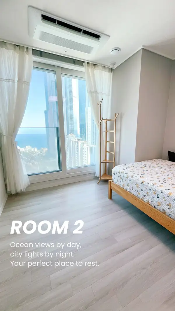 🌿wake 36階から海雲台海水浴場が一望でき、タルマジ丘まで伸びており、リラックスしてリフレッシュするのに最適です。 🌊 🐟海雲台の最高の景色をお楽しみいただけます: ミポ、活気に満ちた海雲台ナイトマーケット、ビーチはすべて徒歩すぐです。駐車の心配は不要です。 🛒アパートから徒歩3分のEマートで手軽に買いだめできます。 👍🏻 🚊 中洞駅から徒歩3分で、釜山駅、南浦洞、西面、釜山の主要名所に素早く簡単にアクセスできます。 *┈┈┈┈*┈┈┈┈*┈┈┈┈ 🌿フレンドリーハウスガイドライン • ペットの持ち込みはお断りしていただきますようお願いいたします。 • アパート内での喫煙は許可されていません。 • 公共料金は平均使用量に基づいて含まれています。 消費が通常の範囲をはるかに超える場合は、わずかな追加料金が要求されることがあります。