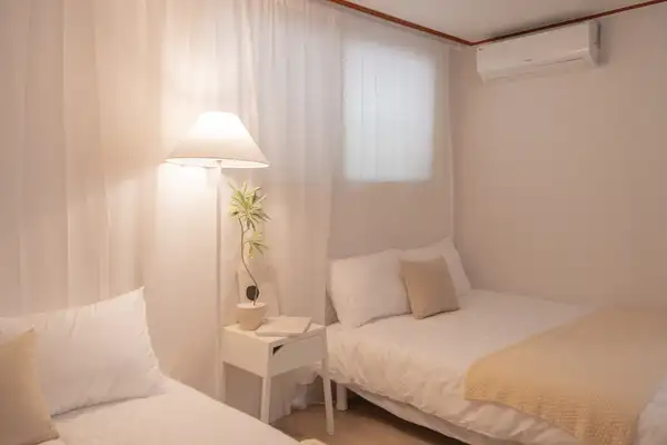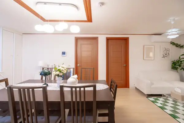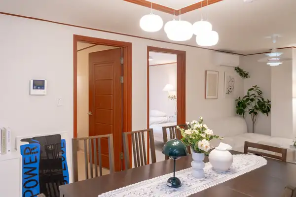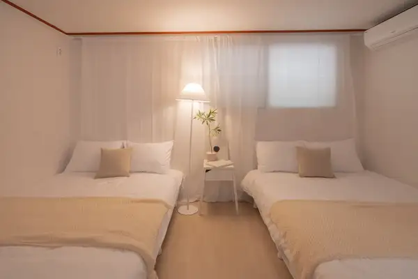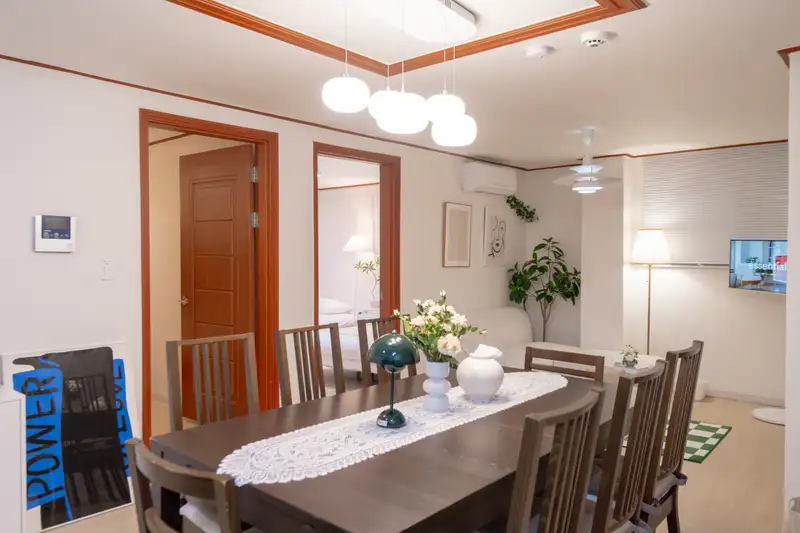 すべての空間を単独で使用できる独立宿泊施設です。 論峴洞の中心に位置する広くて快適な空間で、広いリビングルームと部屋が最大のメリットです。 クイーンサイズのベッド4台とゆったりとしたダイニングルームを備えて家族旅行、団体宿泊、小規模な集まりまで全て快適にご利用いただけます。 ミニマルで温かい感性のインテリアで、滞在中は家のように居心地の良い雰囲気を感じることができます。 🏠宿泊施設内の提供物品 - Wi-Fi(OTTは個人アカウントを使用する必要があります) - タオル/寝具 - お湯/暖房/冷房(冬は暖房、夏は冷房のみ利用可能です) ⚠️ 注意事項 🚙宿泊施設内での駐車不可→近くの公営駐車場利用 🚭 宿泊施設内の全ての区域は禁煙(喫煙禁止) (喫煙時、特殊清掃費30万ウォン+翌日の他のゲストの予約キャンセルや宿泊費用発生) 🎉パーティー·部外者訪問不可 🤫 住宅街の近くに21時以降騒音を自制します 住民からの苦情が発生した場合、即時退室及び払い戻しはできません 🐶ペット同伴不可。 違反時清掃費請求 🧽 寝具の染み·汚染や客室内の物品破損時、費用請求 特に、ベッドの上での飲食はご遠慮願います🥹 🔸臭い料理(肉/魚などのように煙や油、臭いがたくさん出る料理)不可。 違反時特殊清掃費請求 👟客室内での靴着用禁止。 違反時、追加消費10万ウォン請求 🗑 チェックアウト時の分別収集と生ゴミの処理をお願いします。 🚽 便器にウェットティッシュ/食べ物の投入禁止(詰まり発生) 🪞全ての家具やオブジェの位置を移動してはいけません。 🍃室内カビ予防のため、1日1~2回の換気をお願いします。 - 半地下に位置する宿です。 - 階段なしで出入りができるところに重い荷物を運ぶのも便利です。 - 地下鉄駅は徒歩7分の距離にあります。 - コンビニは徒歩1分の距離にあります。