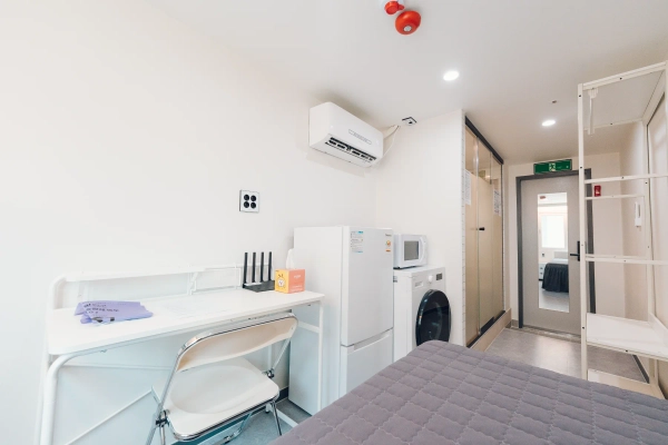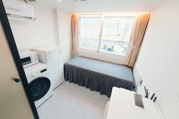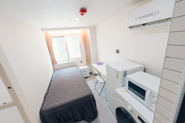 ステイワンレジデンス建大店です。 当ステイワン建大店は各部屋にシャワールーム、トイレ、個別エアコン、ツードア冷蔵庫、ドラム洗濯機(乾燥機兼用)、電子レンジ、各部屋外部窓、個別Wi-Fiを備えております。 公共空間にはコーヒーマシン、浄水器などがあるフルオプションのオフィステル型住居空間です。 25年3月にオープンし、周辺のワンルームテルよりきれいな施設を誇っています。 ペット禁止 喫煙禁止 指定場所外調理禁止 部外者立ち入り禁止 2号線、4号線のコンデ入口駅から徒歩7分、コンデ正門から徒歩5分の距離です。