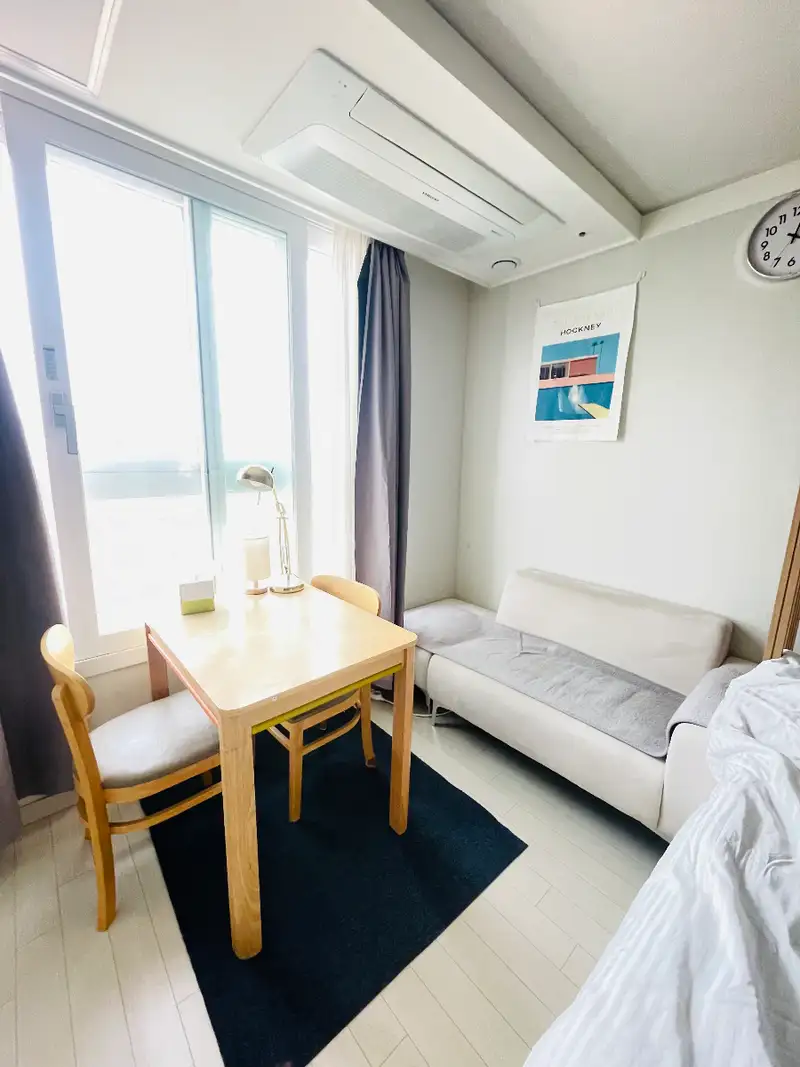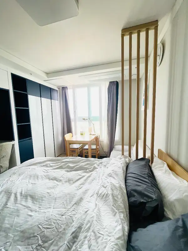 プライベート&マネージド·ステイ 表示 息をのむような16階のオープンビューで、完璧な日光とプライベートテラスアクセスが可能です。 高級なブラックアウトカーテン、電子レンジと電気ケトルを備えた完全な調理施設です。 長期滞在のためのホテルプレミアム標準です。 リラックスし、働き、リフレッシュするのに最適な場所です。 • 場所 高徳駅、イーマート、ダイソーまで1分です。 慶熙大学病院(江東)のすぐ隣です。 • アメニティ 大型書店&カフェ(地下1階)、ミニジム(20階)、ビジネスラウンジ、24Hセキュリティ。 • アクセス バスと駐車場のオプションが簡単です。 河南コストコ、KSPOドーム、蚕室に近いです。