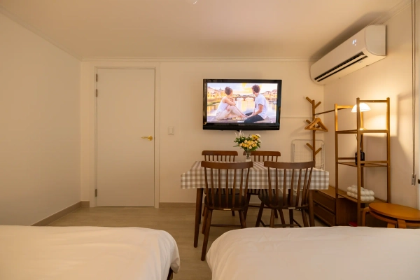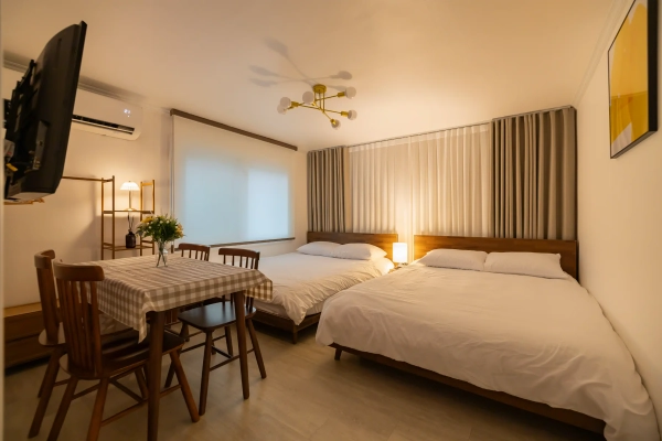๐ฟ ์กฐ์ฉํ ํ๋ฃจ๊ฐ ํ์ํ ๋น์ ๊ป ์์ธ๋ ๊ทผ์ฒ ์ฒญ๋ฃก์ฐ ์๋ฝ ์๋, ๋์ฌ ์ ์ฌ์ ๋ฅผ ๋๋ ์ ์๋ ์์. ๊ฐ์ธ์ด ์ด์ํ๋ ๊ฐ์ ์์์ ๋๋ค. ๐ ํธ์ฌ์ด์ฆ(2์ธ์ฉ) ์นจ๋ 3๊ฐ, ์ต๋ 6์ธ ์๋ฐ ์ต๋ 6์ธ ์ด์ฉ ๊ฐ๋ฅํ๋ โข 2์ธโ ๐ข ๋งค์ฐ ์พ์ (์ฌ์ ์ถฉ๋ถ) โข 3โ4์ธ โ ๐ก ์ ๋นํ ์พ์ (ํธํ๊ฒ ์ด์ฉ ๊ฐ๋ฅ) โข 5์ธ โ ๐ ์ฝ๊ฐ ํ์ (๊ณต์ฉ ๊ณต๊ฐ ๋ค์ ์ ํ) โข 6์ธ โ ๐ด ์ง์ด ๋ง์ ๊ฒฝ์ฐ ํ์ํ ์ ์์ ๐งบ 9kg ์ธํ๊ธฐ(๊ฑด์กฐ ๊ธฐ๋ฅ ํฌํจ), ์ฅ๊ธฐ ์๋ฐ๋ ํธ๋ฆฌ โจ 2025๋ 6์ ๋ด๋ถ ์๋ฆฌ ์๋ฃ, ๊น๋ํ๊ณ ํ๋ผ์ด๋นํ ๊ณต๊ฐ ๐ ์กฐ์ฉํ ๊ณจ๋ชฉ์ ํฌ๊ทผํ ๋ฐค, ์ผ์์์ ๋ฒ์ด๋ ํธํ ์ฌ์ด๊ฐ์ธ์. ๐ก ์ฌํ์ ๋ชฉ์ ์ด ํด์์ด๋ผ๋ฉด, ์ด๊ณณ์ด ๋ฐ๋ก ๋น์ ์ด ์ฐพ๋ ๊ณต๊ฐ์ ๋๋ค. โจ ์ ์ ๋จธ๋ฌผ๋ค ๊ฐ๋ ๊ธฐ์ต์ ๋จ๋, ์กฐ์ฉํ๊ณ ๋ฐ๋ปํ ์๊ฐ ๋์๊ธธ ๋ฐ๋๋๋ค. ๐ ์์ ์ด์ฉ๊ท์น ๋ณธ ์์๋ โ๋จ๊ธฐ์๋(์ฃผํ์๋์ฐจ)โ ํํ๋ก ์ด์๋๊ณ ์์ด, ์๋ ์ํ์ฉํ ๋ฐ ์๋ชจํ์ ์ ๊ณต๋์ง ์์ต๋๋ค. โ ์ ๊ณต๋์ง ์๋ ํญ๋ชฉ ํ์ฅ์ง(ํด์ง), ์๊ฑด, ์นจ๊ตฌ๋ฅ(์ด๋ถยท๋ฒ ๊ฐยทํจ๋ยท์ปค๋ฒ ๋ฑ) ์ดํธยท๋ฆฐ์คยท๋ฐ๋์์ยท์นซ์ ๋ฑ ์ธ๋ฉด๋๊ตฌ ์์ ๋ฐ ์์๋ฃ ์ธ์ ยท์์ธ๋ฏธ ๋ฑ ์๋ชจ์ฑ ์ฒญ์์ฉํ ๊ธฐํ ์๋ฐ์ ์ด๋ฉ๋ํฐ ์ ๋ฐ ์ ์ฃผ ์ , ํ์ํ ๋ฌผํ์ ์ง์ ์ค๋นํด์ฃผ์๊ธฐ ๋ฐ๋๋๋ค. ๐น ์ ์ ์ต์ (์ํ์ค ๊ฒฝ์ฐ) ์ธ๋ถ ์ ์ฒด ์นจ๊ตฌ ์ธํ ์๋น์ค ์ด์ฉ ๊ฐ๋ฅ: 10๋ง์(ํ์ฅ ํ๊ธ ๊ฒฐ์ ). โป ์์ฒญ ์ ์ด์ฉ ๋ฐฉ๋ฒ์ ๋ณ๋ ์๋ด๋๋ฆฝ๋๋ค. ๋์งํธ ๋์ด๋ฝ ๋ฐฉ์์ผ๋ก ํ๊ด ๋น๋ฐ๋ฒํธ๋ ์ฒดํฌ์ธ ๋น์ผ์ ์๋ดํด ๋๋ฆฝ๋๋ค. ์ ํ ์ฒดํฌ์ธ ๋ฐฉ์ (์์ธํ ์๋ด ๋ฉ์์ง ๋ฐ์ก) ์ ํฌ ์์๋ ์กฐ์ฉํ ์ฃผํ๊ฐ์ ์์นํ๋ฏ๋ก ๋ฐค 9์ ์ดํ์ ํฐ ์์์ ์์ ํด ์ฃผ์๊ธธ ๋ถํ๋๋ฆฝ๋๋ค. ๋ชจ๋ ๋ฐฉ์ด ๋ฐ๋ฅ ๋๋ฐฉ ๊ฐ๋ฅํ๊ณ ์์ด์ปจ์ด ๋ฐฉ๋ง๋ค ์ค์น๋์ด ์์ด ์พ์ ํ๊ฒ ์ง๋ด์ค ์ ์์ต๋๋ค. โ ์ฒดํฌ์ธ/์ฒดํฌ์์ ์ฒดํฌ์ธ: ์คํ 4์ ์ดํ(์ผ๋ฆฌ ์ฒดํฌ์ธ ์ํฉ ๊ฐ๋ฅํ ์ 1์๊ฐ 10,000์) ์ฒดํฌ์์: ์ ์ค ๋ฎ(์คํ) 11์ (๋ฌด๋จ ํด์ค ์๊ฐ ๋ฏธ ์ค์ ์ 1๋ฐ ์๊ธ+30๋ถ๋น 3๋ง์) โ ์์ ๋ฐ ๋ณด์-์ธ์ถ ์ ๋ฐ๋์ ๋ฌธ ์ ๊ธ โ ์์ ๋ด ์ฃผ์ฐจ ๋ถ๊ฐ ์์ธ ์ฃผ์ฐจ ์ ๋ณด ์ฑ, ๋ชจ๋์ ์ฃผ์ฐจ์ฅ, ์ฃผ๋ง์ฌ ์ฑ ๋ค์ด๋ก๋ ํ ์ด์ฉ๊ถ์ฅ ๋์ค๊ตํต ๊ถ์ฅ โ ์ฌ์ฉํ ์๊ธฐ๋ฅ ์ค๊ฑฐ์ง ํ ์ ๋ฆฌ ์ฐ๋ ๊ธฐ ๋ถ๋ฆฌ์๊ฑฐ ํ์กฐ ์ฒดํฌ ์์ ์ ์ ๋ฆฌ ์ ๋ โ ์ํด ๋ฐ ๋ถ์ค ์์ ์ ๋ณ์ ์๋ฌด ์์ ๋ด ๋ถ์ค๋ฌผ ์ฑ ์์ง์ง ์์ ๋๊ณ ๊ฐ์ ์์๋ฌผ์ ํ๊ธฐ ์ฒ๋ถ๋ฉ๋๋ค. ํด์ค ํ ๋ฐ๋ก ์ฒญ์ ์ ์ฒด๊ฐ ๋ฐฉ๋ฌธํ์ฌ ์ฒญ์๊ฐ ์ด๋ฃจ์ด์ง๋ฉฐ, ์์๋ฌผ์ ๋ณด๊ดํ ์ ์๋ ๊ณณ์ด ์์ต๋๋ค. ๊ท์คํ ๊ฐ์ธ ๊ด๋ฆฌ ํ์ ์ฃผ์ฐจ ์ค ๋ฐ์ํ๋ ์ฐจ๋ ์์์ด๋ ์ฌ๊ณ ์ ๋ํด์๋ ํธ์คํธ๊ฐ ์ฑ ์์ง์ง ์์ต๋๋ค. ๋ถ์ฃผ์๋ก ์ธํ ์ฌ๊ณ ์ ๋ํด์๋ ์ฑ ์์ง์ง ์์ต๋๋ค. *์ ๊ธฐ์ ์ผ๋ก ๋ฐฉ์ญ ์งํํ๊ณ ์์ผ๋, ์ฐ ์ฃผ๋ณ ์์นํ ์ฃผํ๊ฐ๋ก ๋ฌธ์ ์ด๊ณ ๋ซ์ ์ ๋ฒ๋ ๊ฐ ๋ค์ด์ฌ ์ ์์ต๋๋ค. (ํด๋น ์ฌ์ ๋ก ํ๋ถ ๋ถ๊ฐํฉ๋๋ค) ๐ ์์ธ๋์ ๊ตฌ์ญยท๊ณตํญ๋ฒ์ค(6017) ์ ๋ฅ์ฅ ๋๋ณด 12๋ถ ๐ ๊ฐ๋จ 14๋ถ ยท ํ๋ 23๋ถ ยท ๋ช ๋ 28๋ถ ์ด๋ ๊ฐ๋ฅ ๐ ์ค๋ก์๊ธธยทํธ์์ ยท์นดํยท์ฌ๋ฆฌ๋ธ์ ๋ชจ๋ ๋๋ณด๊ถ